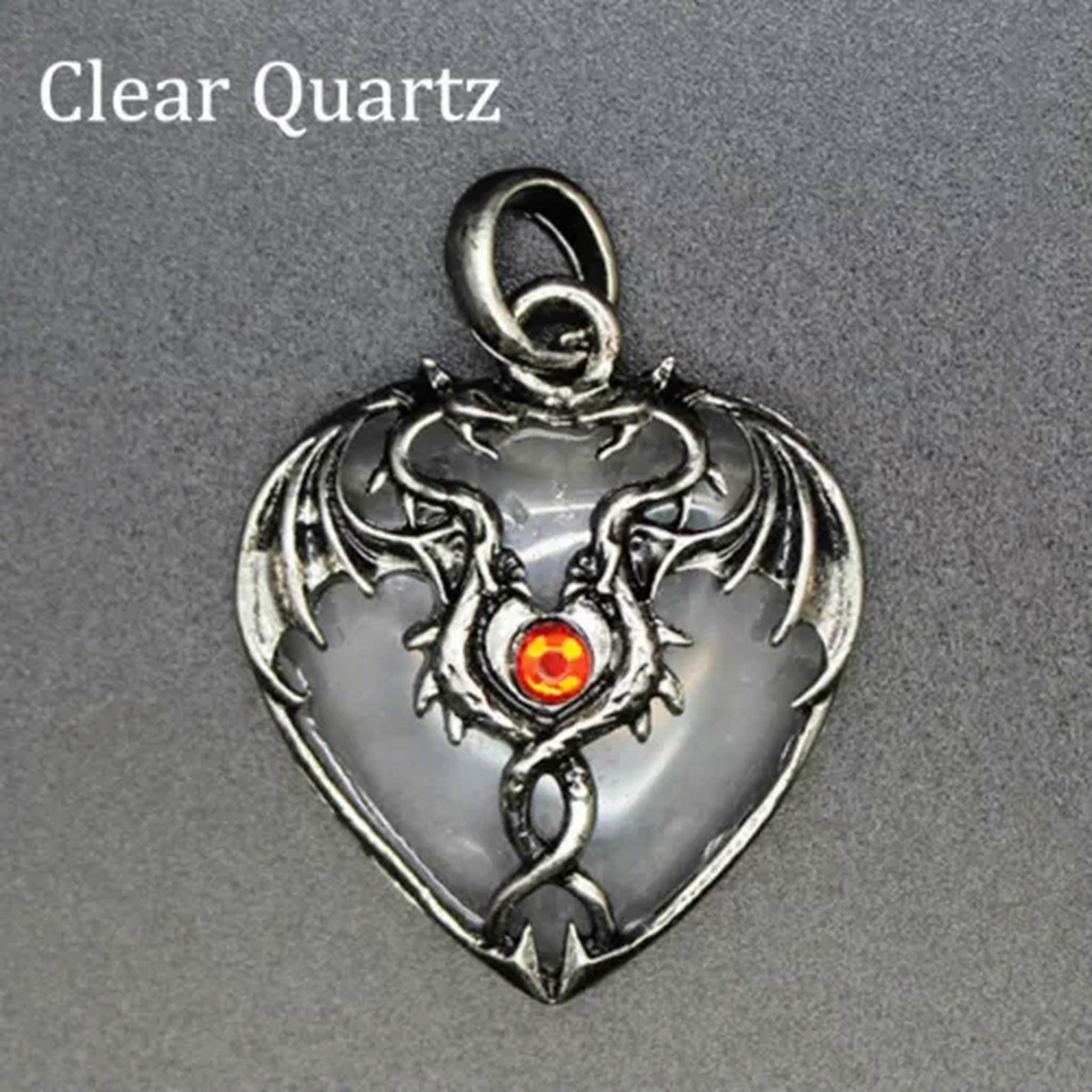 RSAMD Natural Crystal Chakra Heart Double Dragon Pendant Quartz Skull Reiki Healing-Clear Quartz