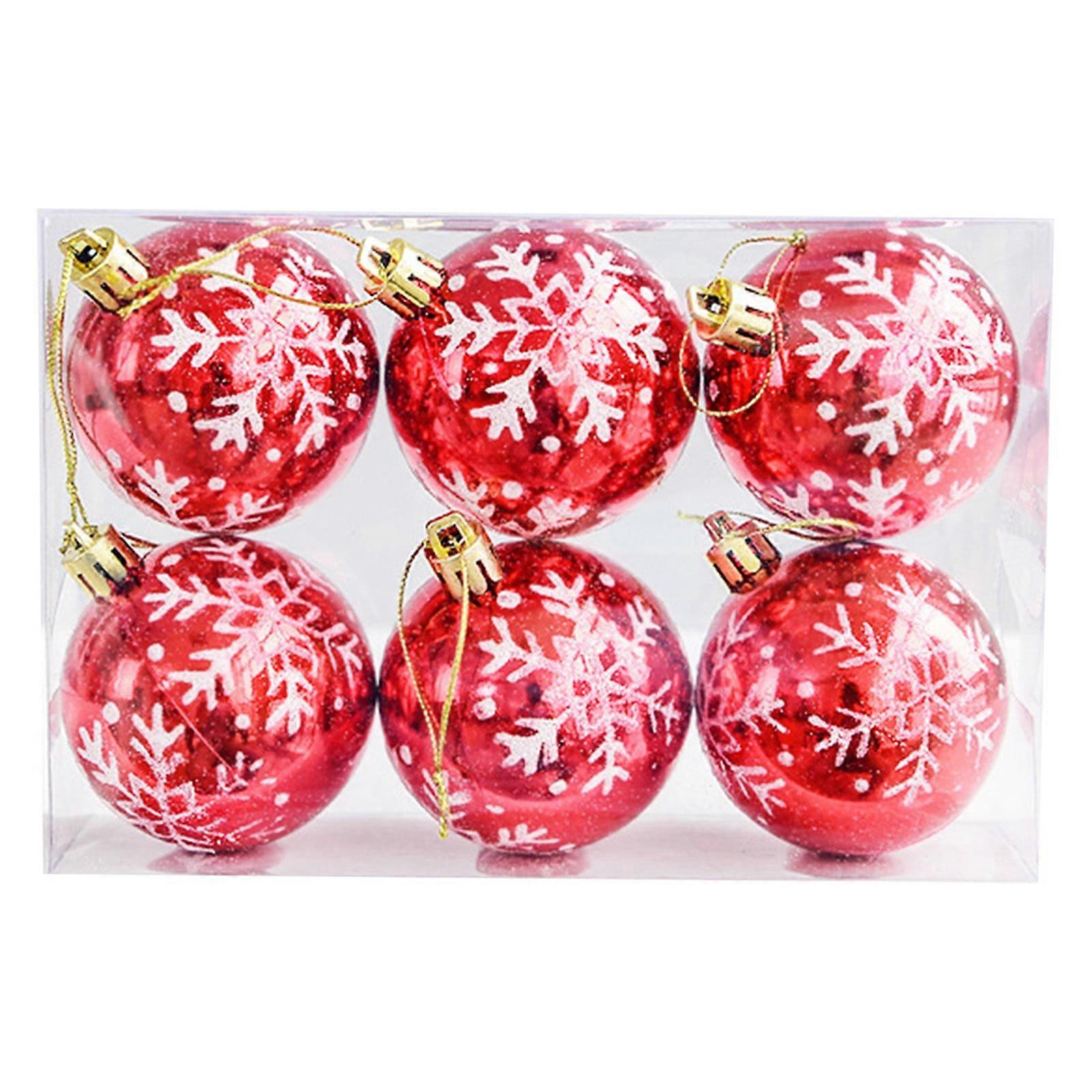 Christmas Decorations 6cm Bright Plastic Electroplated Balls, Snowflake Painted Pendant for Tree - 6X Balls