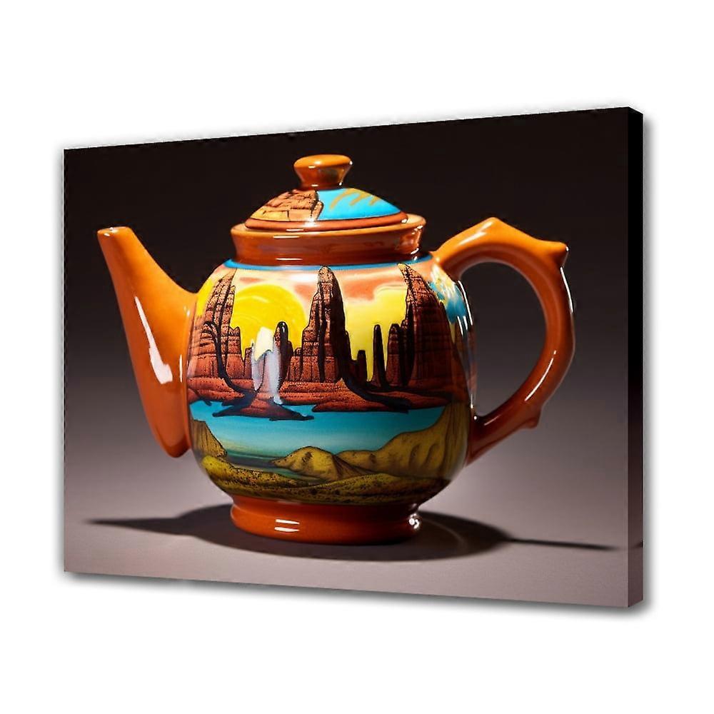 Ceramic Teapot with Desert Landscape Pattern Canvas Poster, 16x24 inch – Bedroom, Office Decor or Gift (Frame-style, 40x60cm)