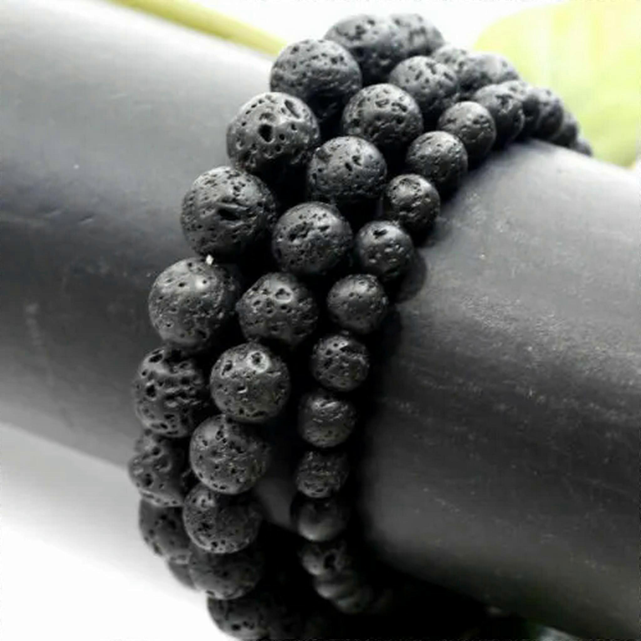 RSAMD Natural Tiger's Eye Lucky Yoga Beads Healing Bless Bracelet 6/8/10MM Women Men-AAA+ Black Lava-6mm