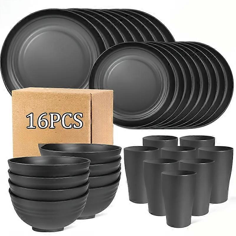 16pcs Eco Tableware Set - Biodegradable Plates Bowls Cups, Heat-Resistant Compostable BPA-Free Plant-Based for Family Kids