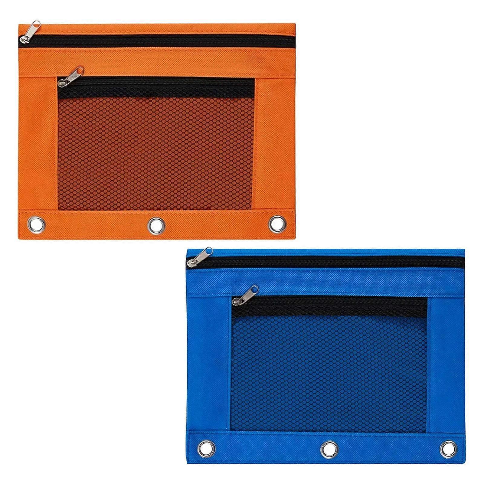 Stationery Bag Celebration Activ 2Pc Cloth Double Zipper Three Hole Document Bag Transparent Stationery Bag Office Pen Bag