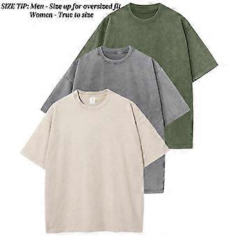 GXE 3 Pack Men Women Oversized T Shirts Vintage Tee Loose Fit Short Sleeve Casual Streetwear Baggy Washed Unisex Tops Beige Crewneck Machine