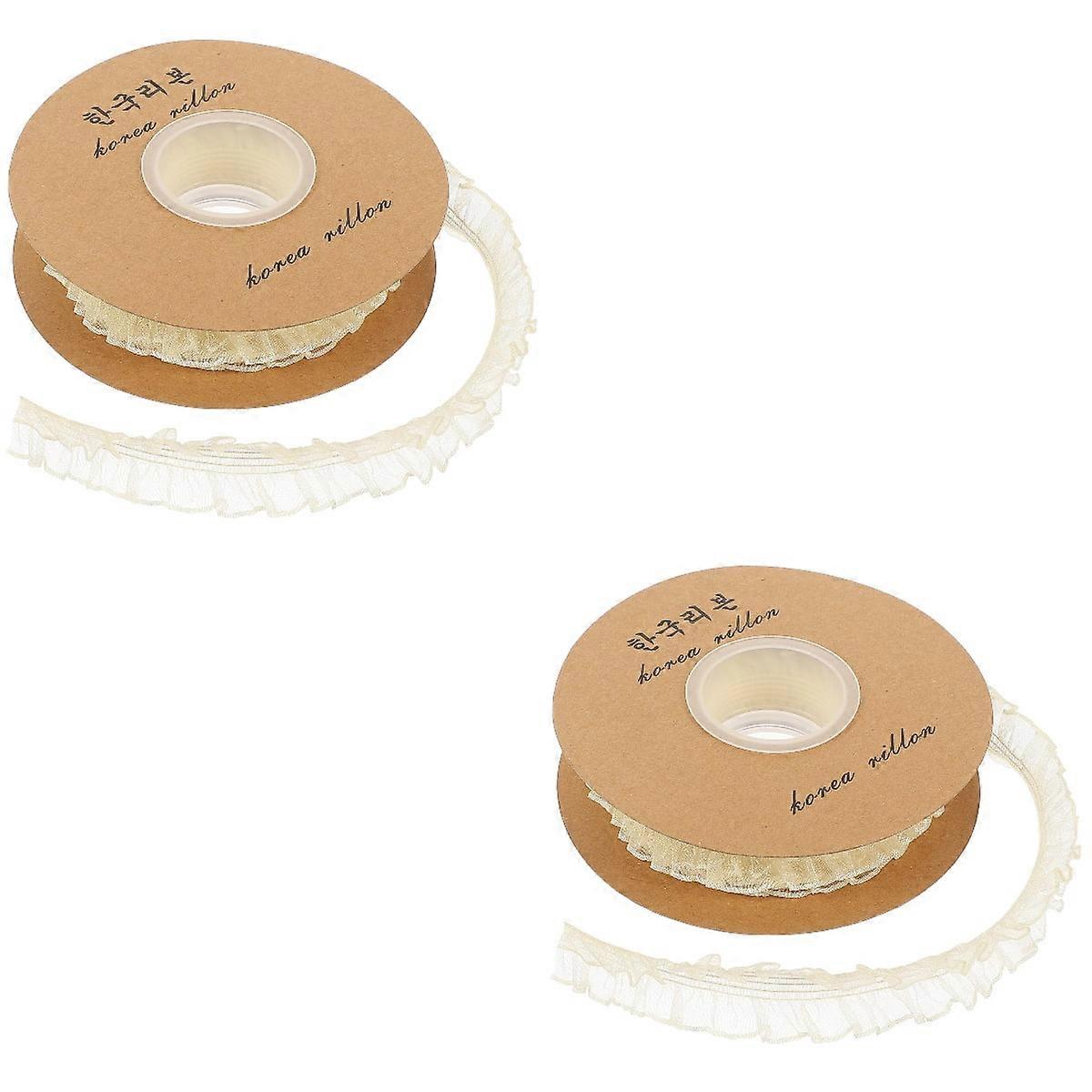 2 Rolls Stretch Lace Decor Dreses Lace Trim for Sewing Elastic Ribbon Organza Ruffled Fabric Crafting Ribbons