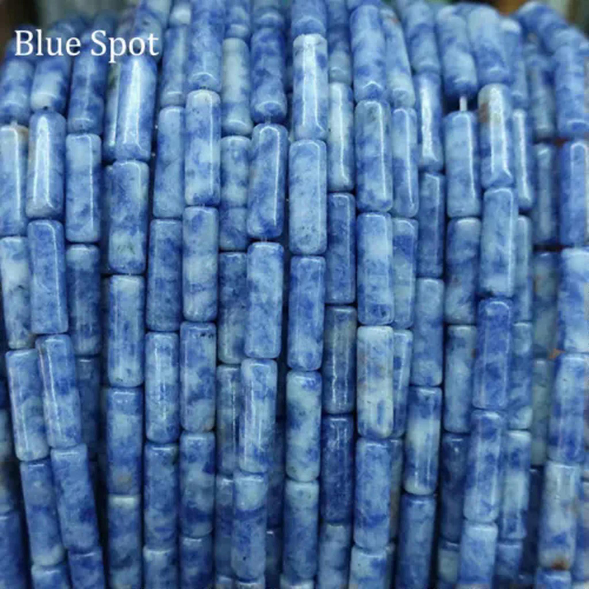 RSAMD 16" Multi-color Gemstone 4*13mm Tube Cylinder Loose Beads for Jewelry Making DIY-Blue Spot-1 String (Random)