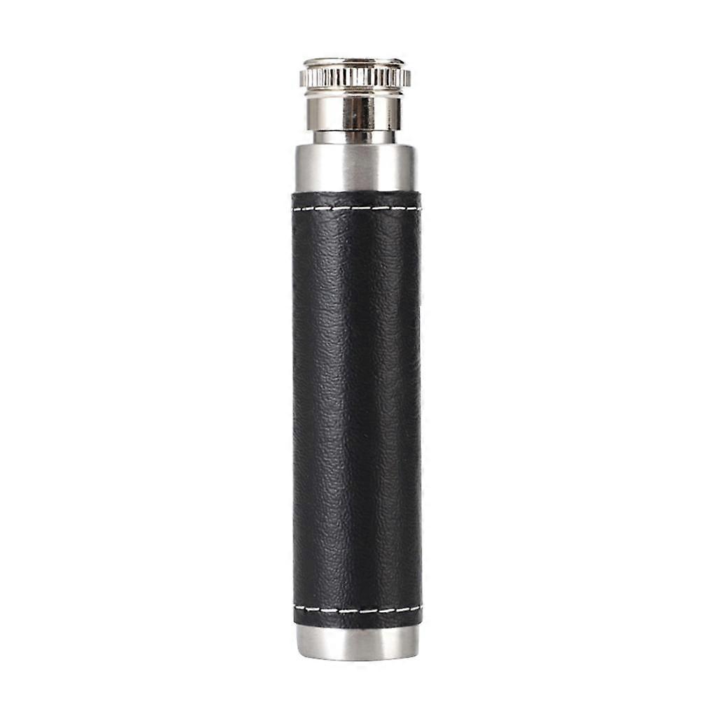 1pc 1oz Stainless Steel Portable Wine Tube Leather Cover Tube Shape Round Base for Outdoor Use (Black + Silver)