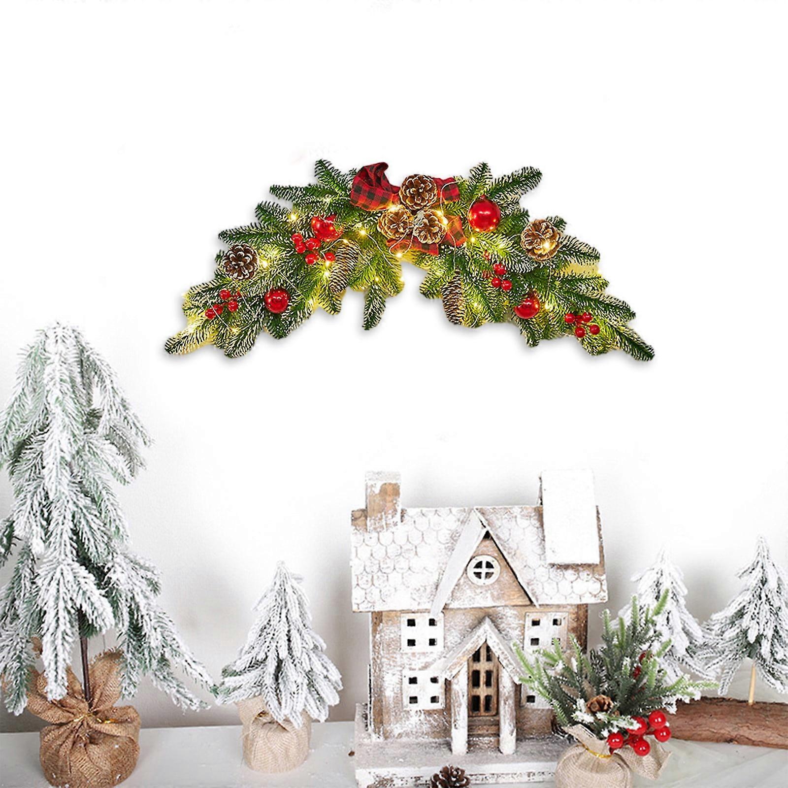 Txmfgh Christmas Wreath With Lights, Pre-Lit Christmas Wreath With Ribbon, Ball Ornaments, For Door Window Mantle Christmas Decoration