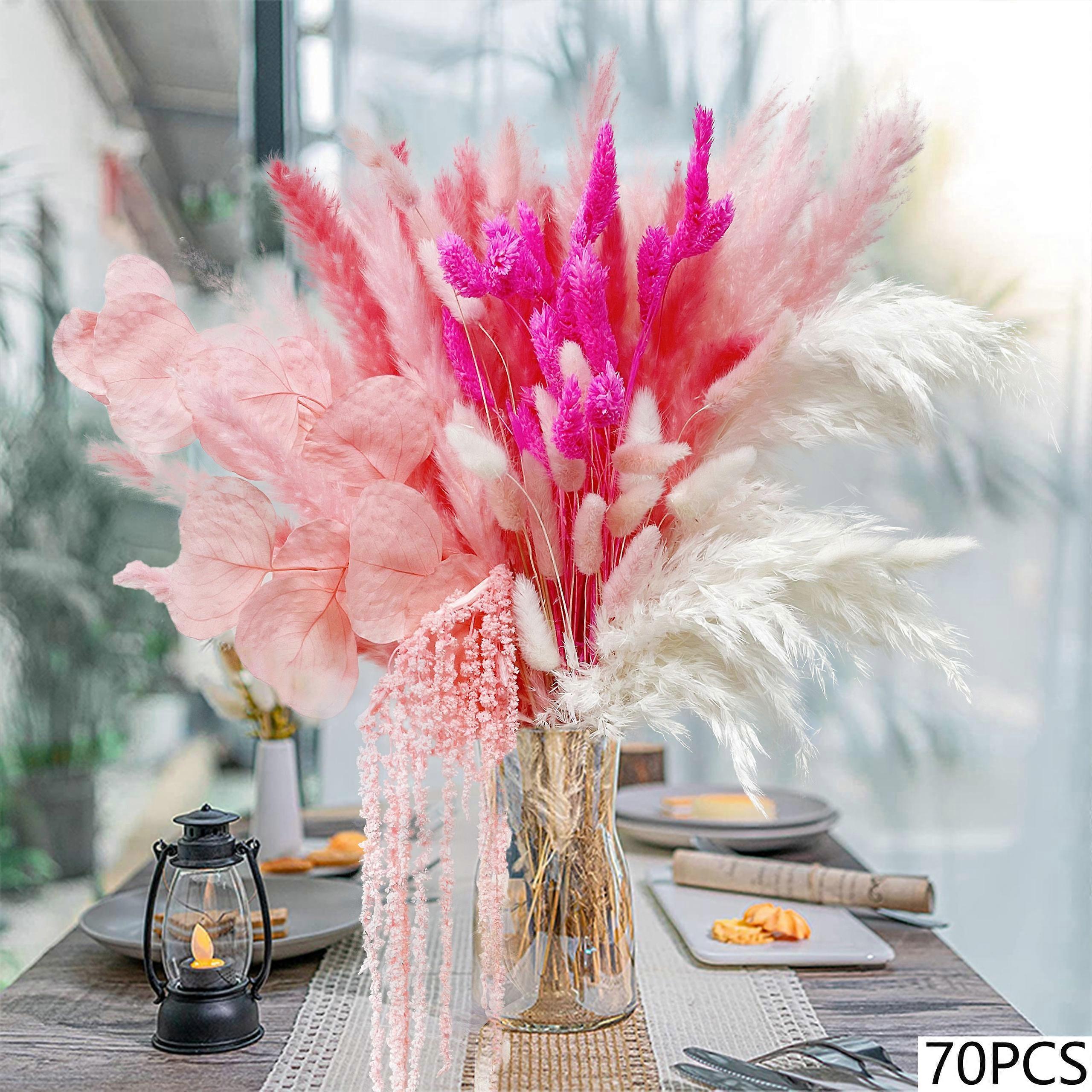 Natural Pampas Pink Dried Flowers Bunny Tails Gem Grass Bouquet Wedding Decor Eucalyptus Leaf Hanging Rice Home Vase Decoration