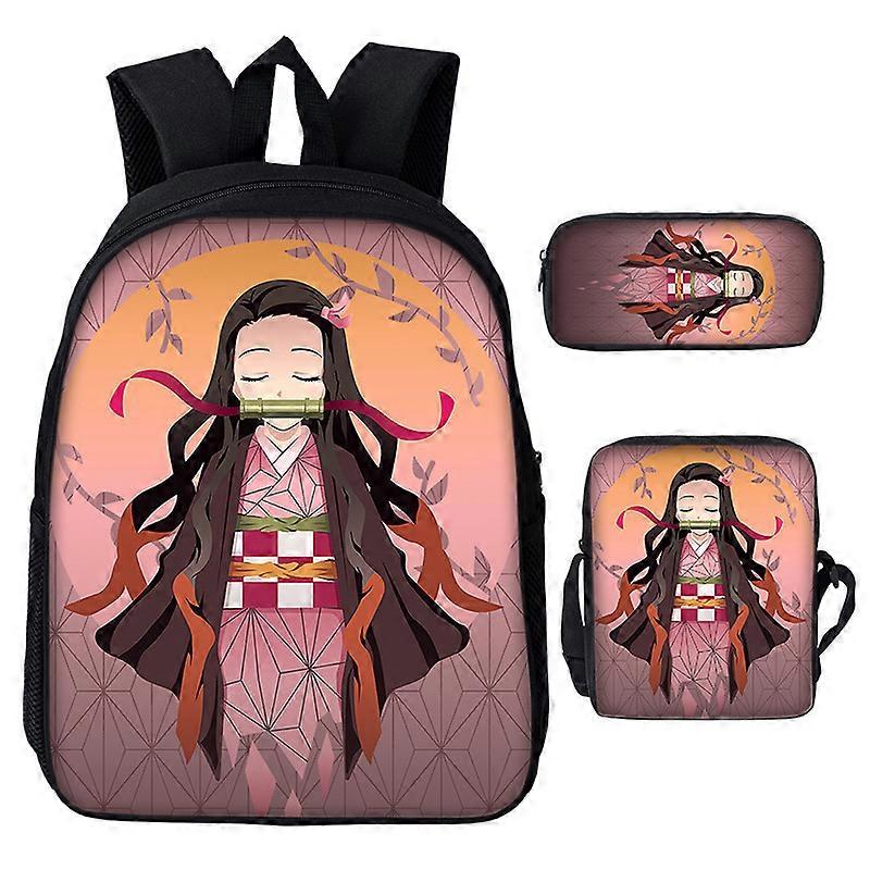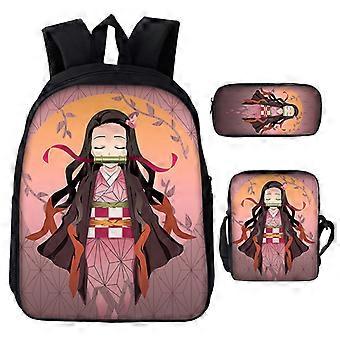 3PCS/SET Japan Anime Demon Slayer Students Boys Girls Schoolbag Backpack Children Teenager Cartoon Oxford Waterproof School Bag