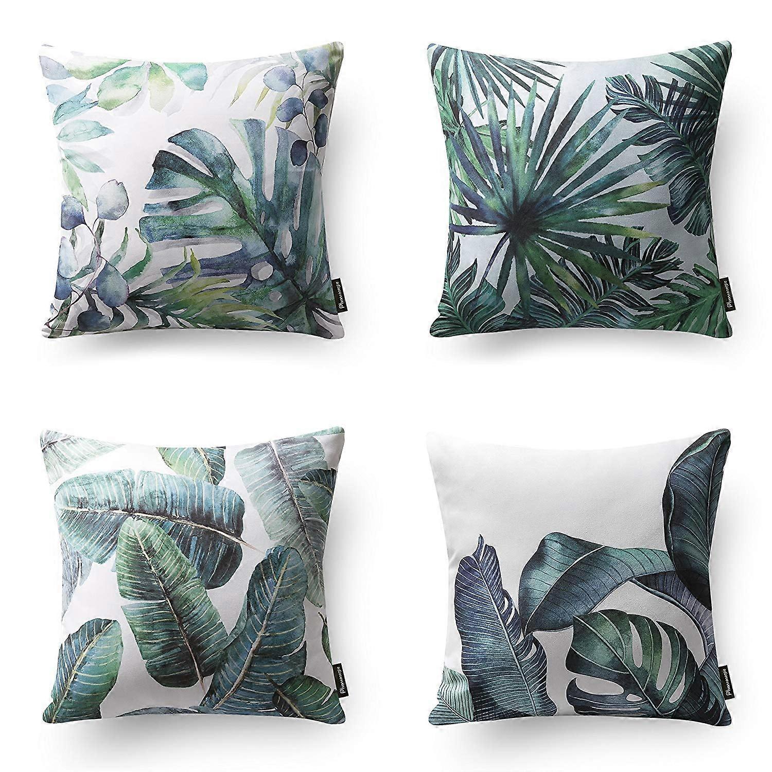 Phantoscope Tropical Series Decorative Throw Pillow, 18" x 18", Green Leaves, 4 Pack