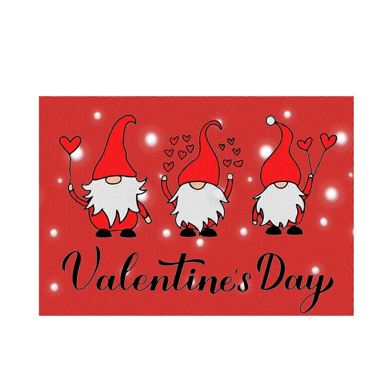 Pink Heart Gnome Valentine's Day Doormat 20x32 Inch, Washable Non-Slip Welcome Mat for Indoor Outdoor, compatible with Front Door Decorations