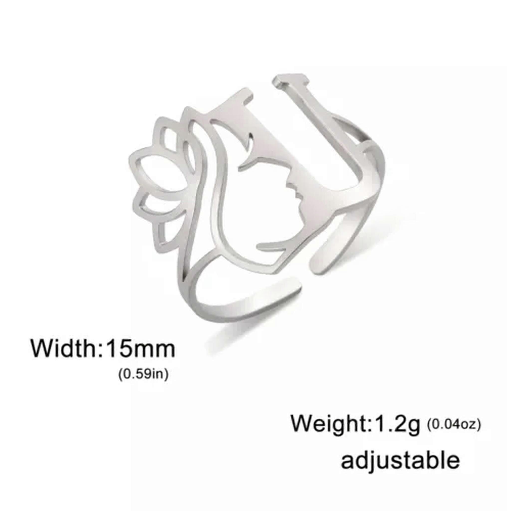 RSAMD Letter Lotus Rings Adjustable Stainless Steel Initials Alphabet Ring Jewelry-Adjustable-U-Steel