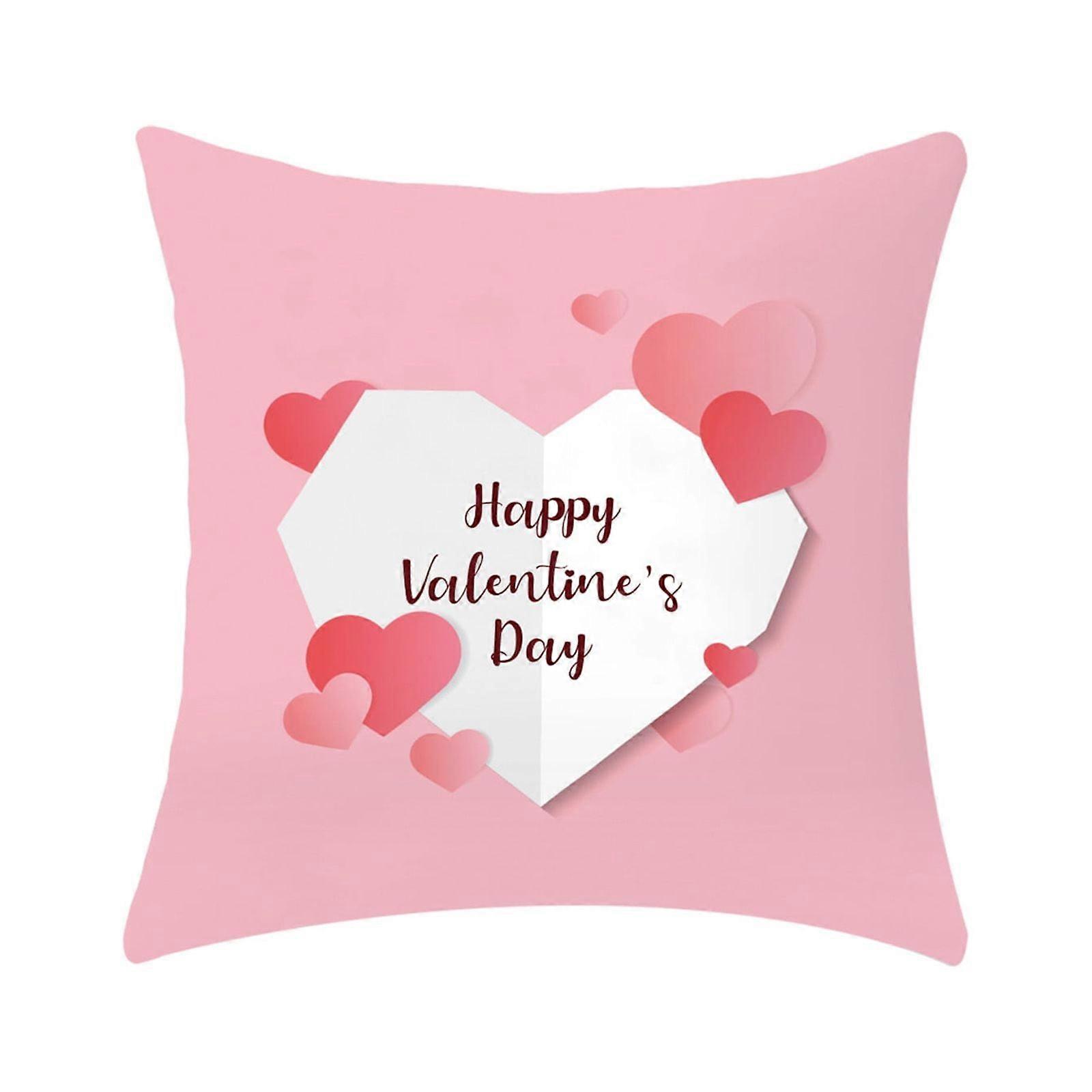Valentine's Day Pillow Cover 18x18 Inch, Pink Gnome Happy Valentine's Day Couch Cushion, Love Day Decorative Cushion for Sofa Bedroom Party