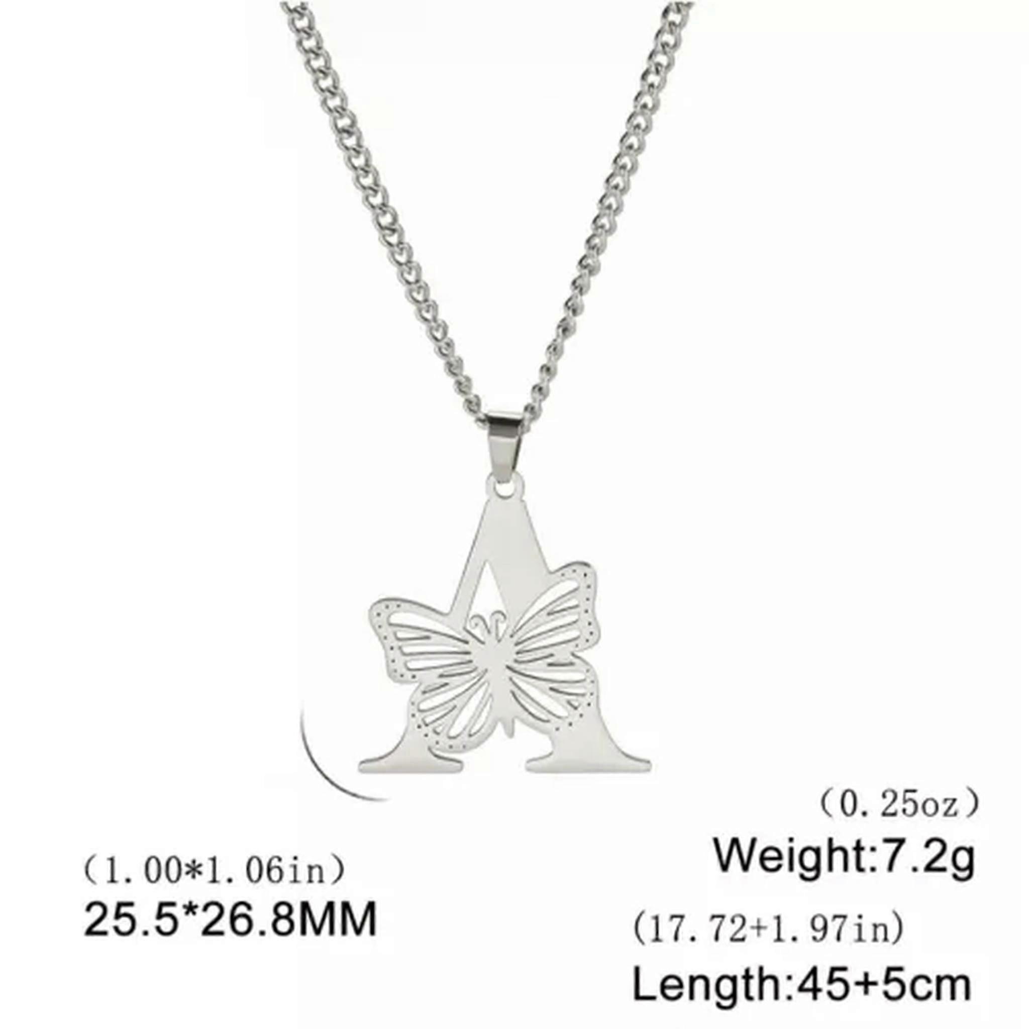 RSAMD Stainless Steel Butterfly Letter Pendant Necklace Initial Alphabet Jewelry-45-50cm-M-Steel color