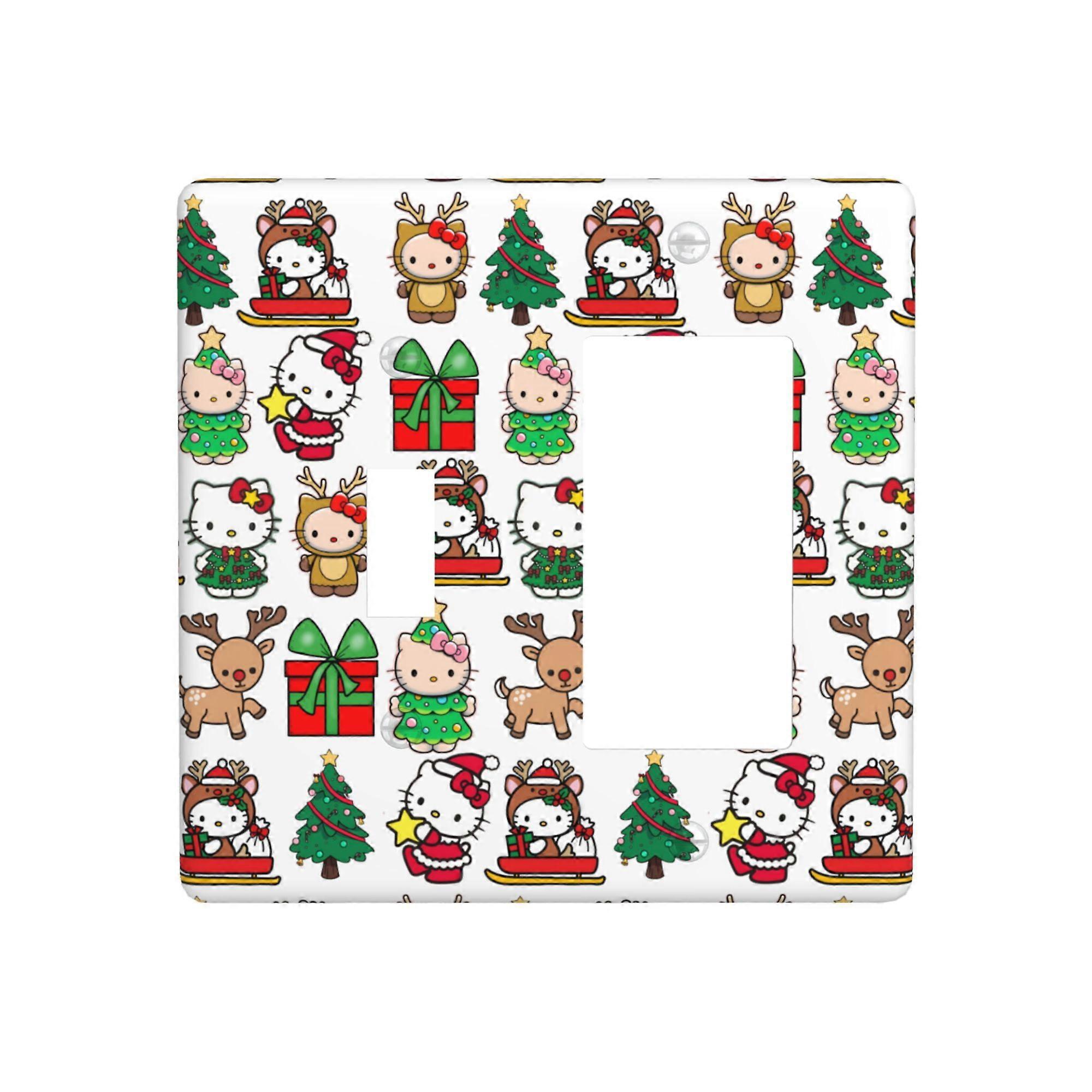 Hello Kitty Christmas Print Wall Panel for 4.5x4.5 in Switch Cover, PC Material, Compatible with Standard Toggle Switches, Home Kitchen Bedroom Decor