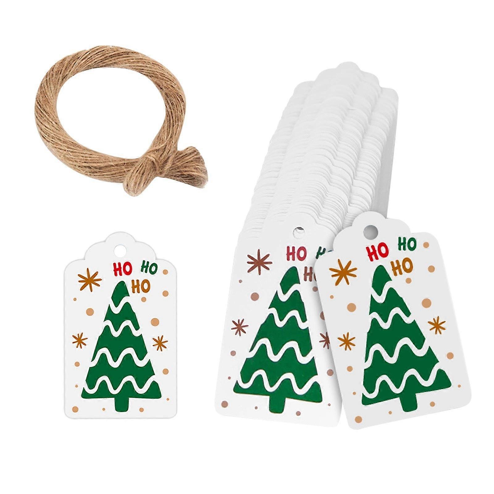 Poaug Christmas Decoration Set: 100Pcs Snowflake/Snowman Tags + 20M Jute Rope, Compatible with H Wall Hooks for Pictures