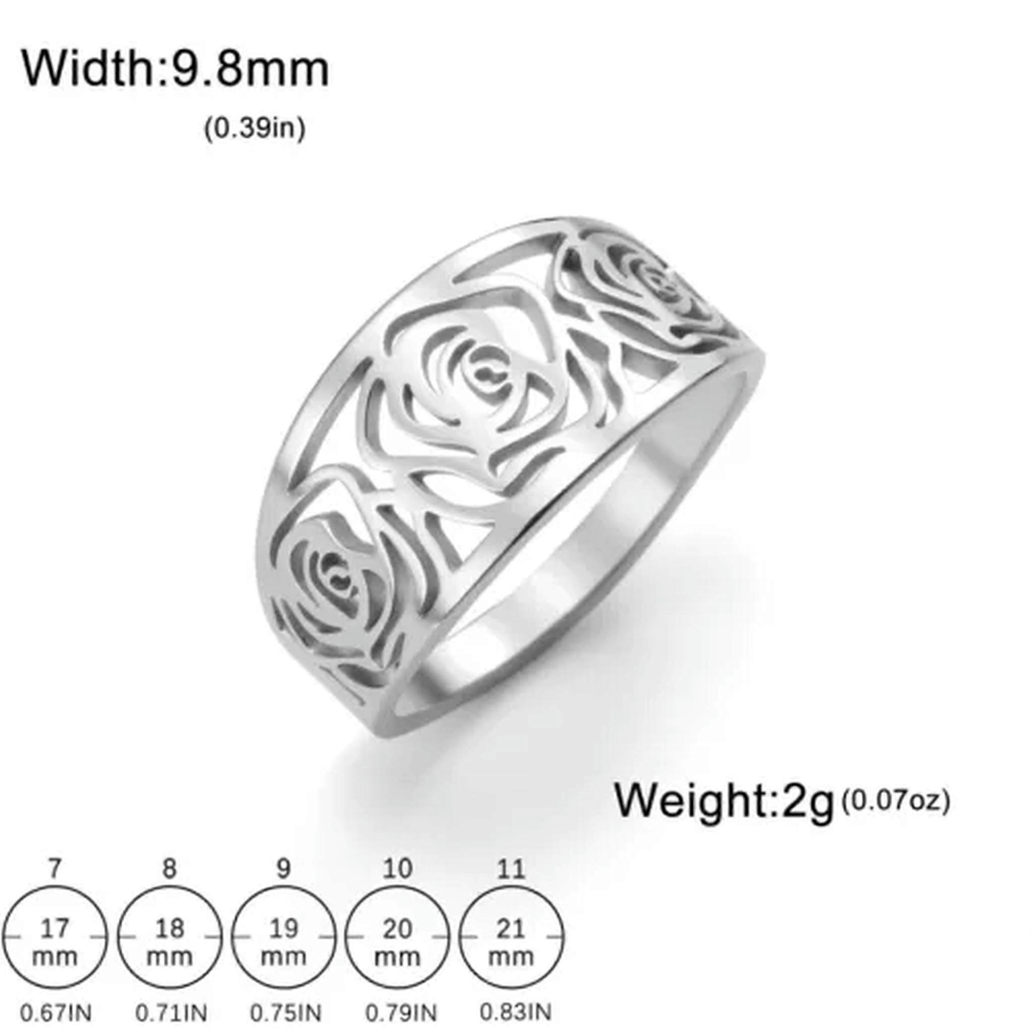 RSAMD Hollow Rose Ring Stainless Steel Flower for Women Jewelry Valentine's Day Gift-Steel-11