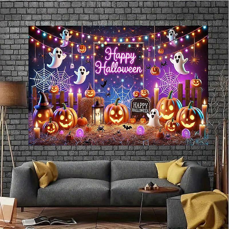 2D FLAT banner background fabric banner party decoration Halloween polyester fiber background banner, scary pumpkin and ghost de