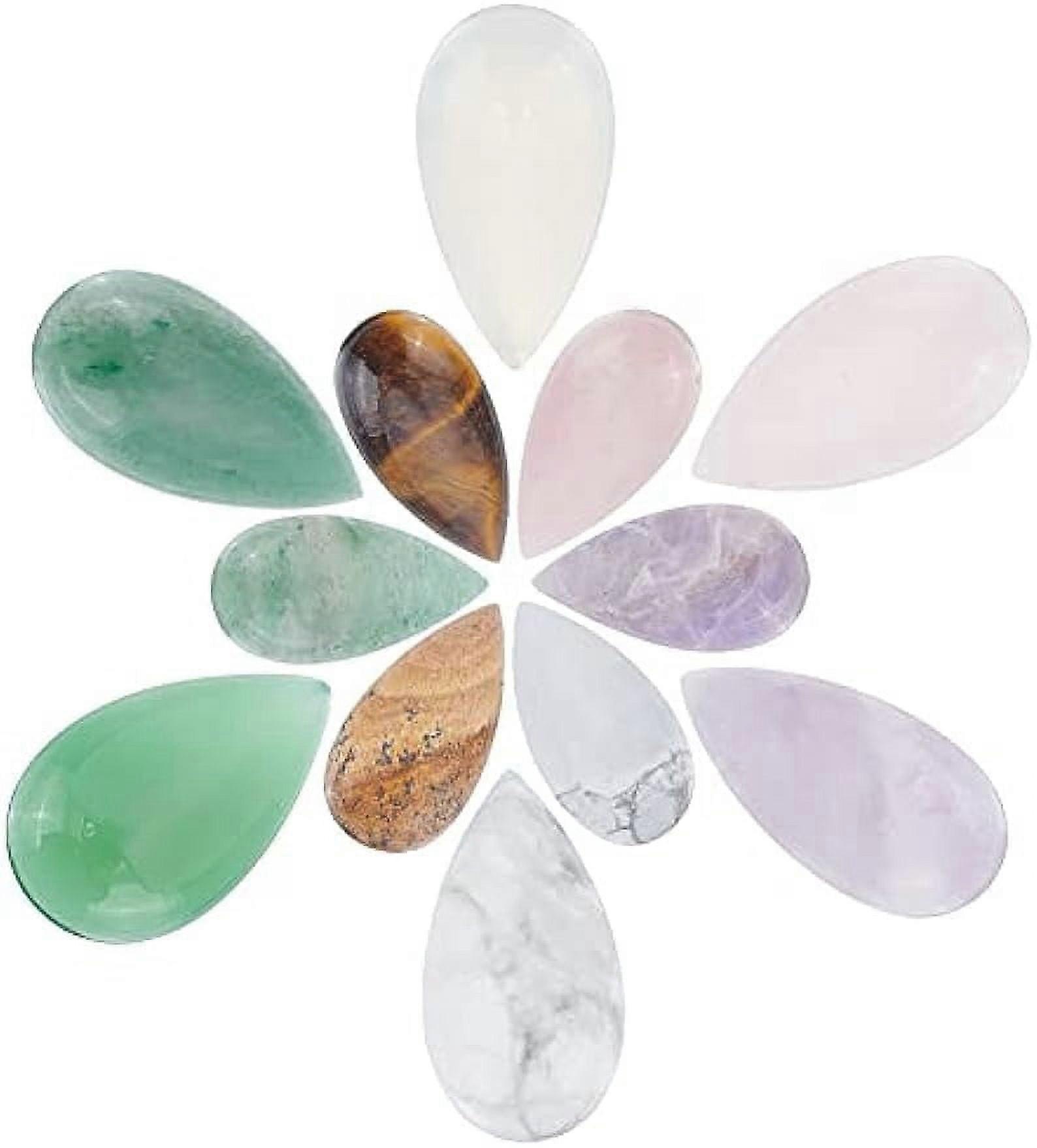 12pcs Gemstone Cabochons 12 Styles Teardrop Natural Stone Agate Amethyst Cabochons Flatback Cabochons
