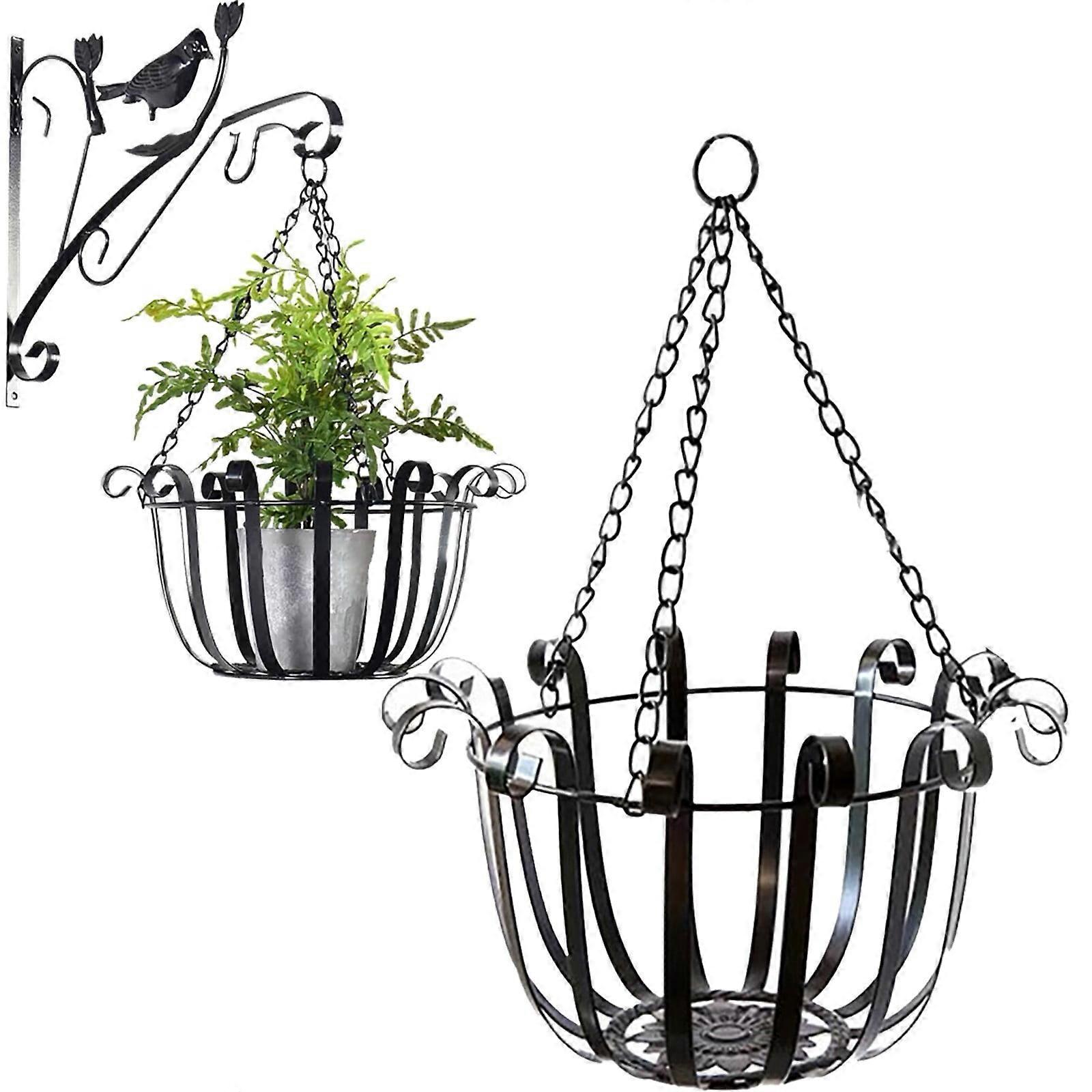 Begine Hanging Basket Wall Flower Pot, Metal Planter for Indoor Outdoor with Chain, Compatible with Home Fence Decor