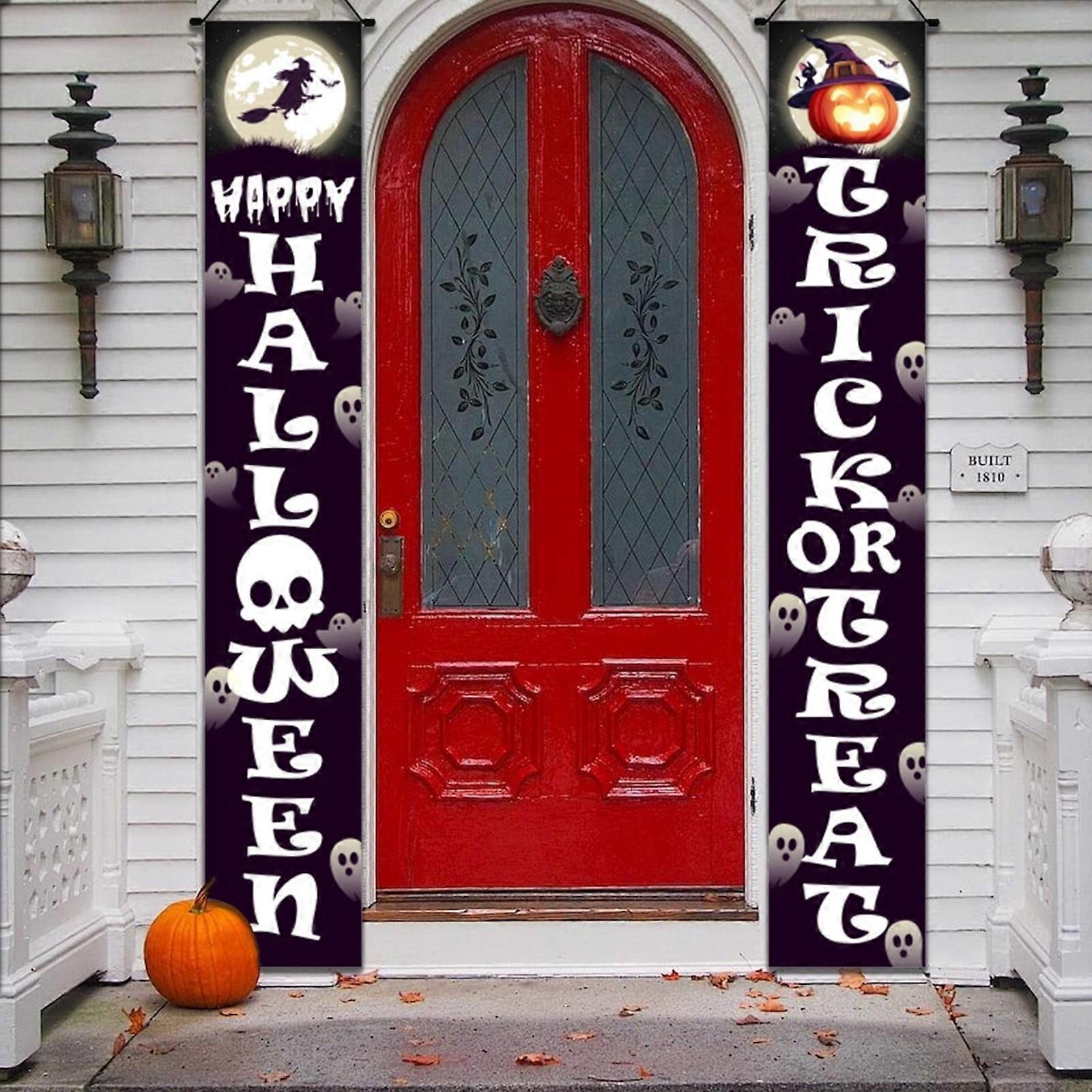 Halloween Decorations Outdoor Halloween Decor Halloween Banners Porch Signs Decor Outdoor For Front Door Outside Yard Party Supplies Features: PRODUCT CONTENT - They are printed on one side. You can secure the Halloween banner in place with tape or UNIQUE DECOR - These great front porch Halloween decorations are perfect for adding decoration to your home. They can be easily hung on door sides, walls, , gardens, ceilings, front porches, balconies and more. Get creative and feel to hang -or- banner signs anywhere you want EASY TO USE - This Halloween party decoration banner sign comes pre-assembled with poles and string so you're ready to use them. to keep halloween signs hanging longer - Our Halloween home decorations are made of polyester, enough to keep and use. you get your worth WIDE USES - Easy to use, ready to hang this Halloween party banner on your house, , patio, front porch, front door, entryway, backyard, window, wall, gate or tent, waiting for trick-or- Come on people, you will receive many compliments Product Description: Halloween Decorations Outdoor Halloween Decor, Halloween Banners Porch Signs Decor Outdoor - For Front Door Outside Yard Party Supplies Material: cloth Color: as the picture shows, (Due to the difference between different monitors, the picture may have slight color difference. please make sure you do not mind before ordering, Thank you!) PRODUCT CONTENT - They are printed on one side. You can secure the Halloween banner in place with tape or UNIQUE DECOR - These great front porch Halloween decorations are perfect for adding decoration to your home. They can be easily hung on door sides, walls, , gardens, ceilings, front porches, balconies and more. Get creative and feel to hang -or- banner signs anywhere you want EASY TO USE - This Halloween party decoration banner sign comes pre-assembled with poles and string so you're ready to use them. to keep halloween signs hanging longer Our Halloween home decorations are made of polyester, enough to keep and use. you get your worth WIDE USES - Easy to use, ready to hang this Halloween party banner on your house, , patio, front porch, front door, entryway, backyard, window, wall, gate or tent, waiting for trick-or- Come on people, you will receive many compliments