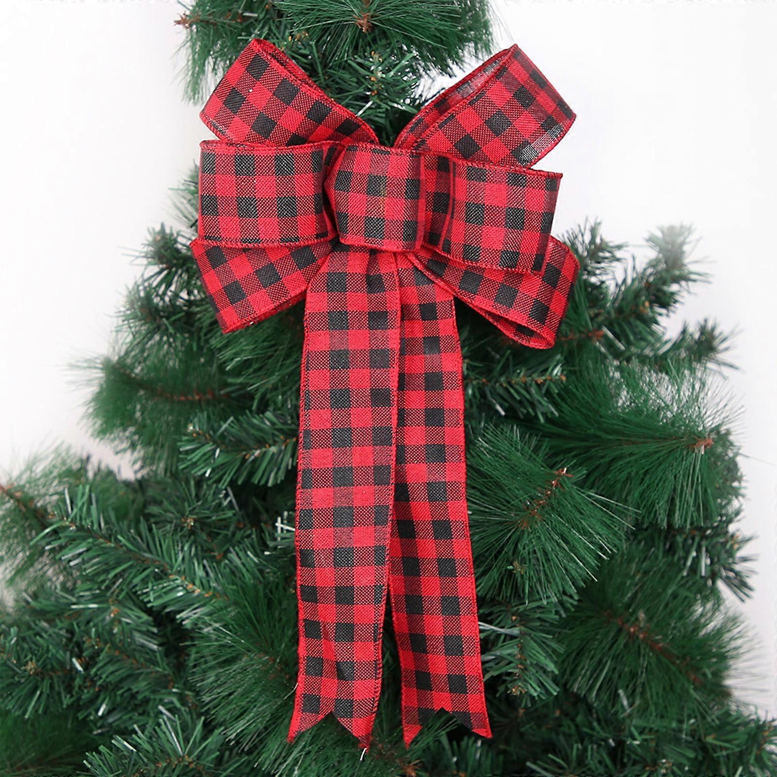 13.6'' x 8.4'' Large Christmas Bows, Buffalo Plaid Bows for Wreath Garland, Tree Topper, Indoor Outdoor Decor (Red Plaid)