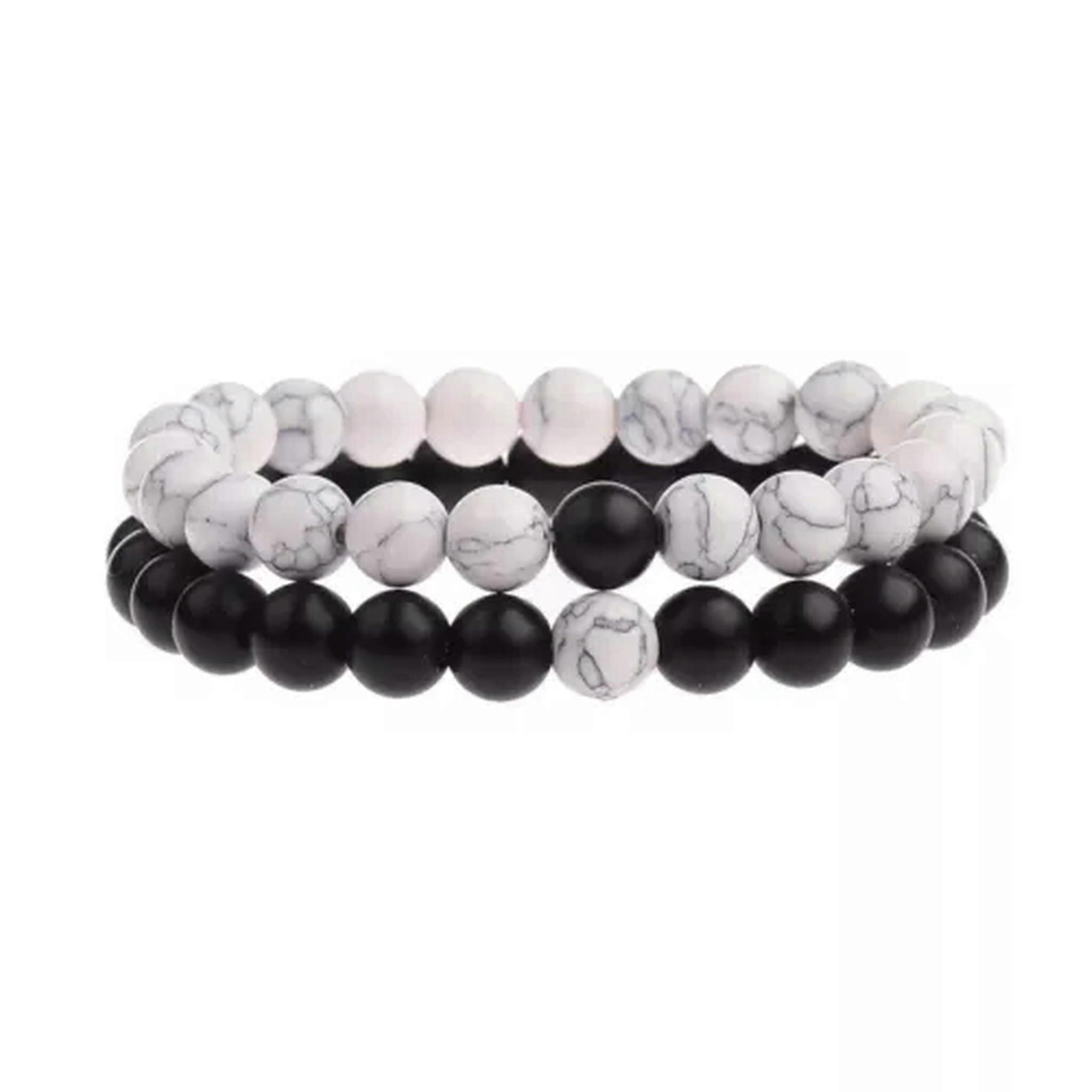 RSAMD 2Pcs Distance Bracelet for Women Men Blue Black Stone Yoga Energy Beaded Couple-Vermeil-China