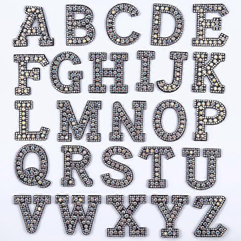 White Pearl English Letter Name Patch Alphabet Rhinestone Sew Iron On Patch Clothes Handmade Diamond Black Letters Patches Badge