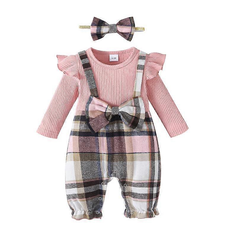 Baby Girls 0-18 Months Long Sleeve Bowknot Romper and Headband Crew Neck Flying Sleeve Design One Piece Outfit