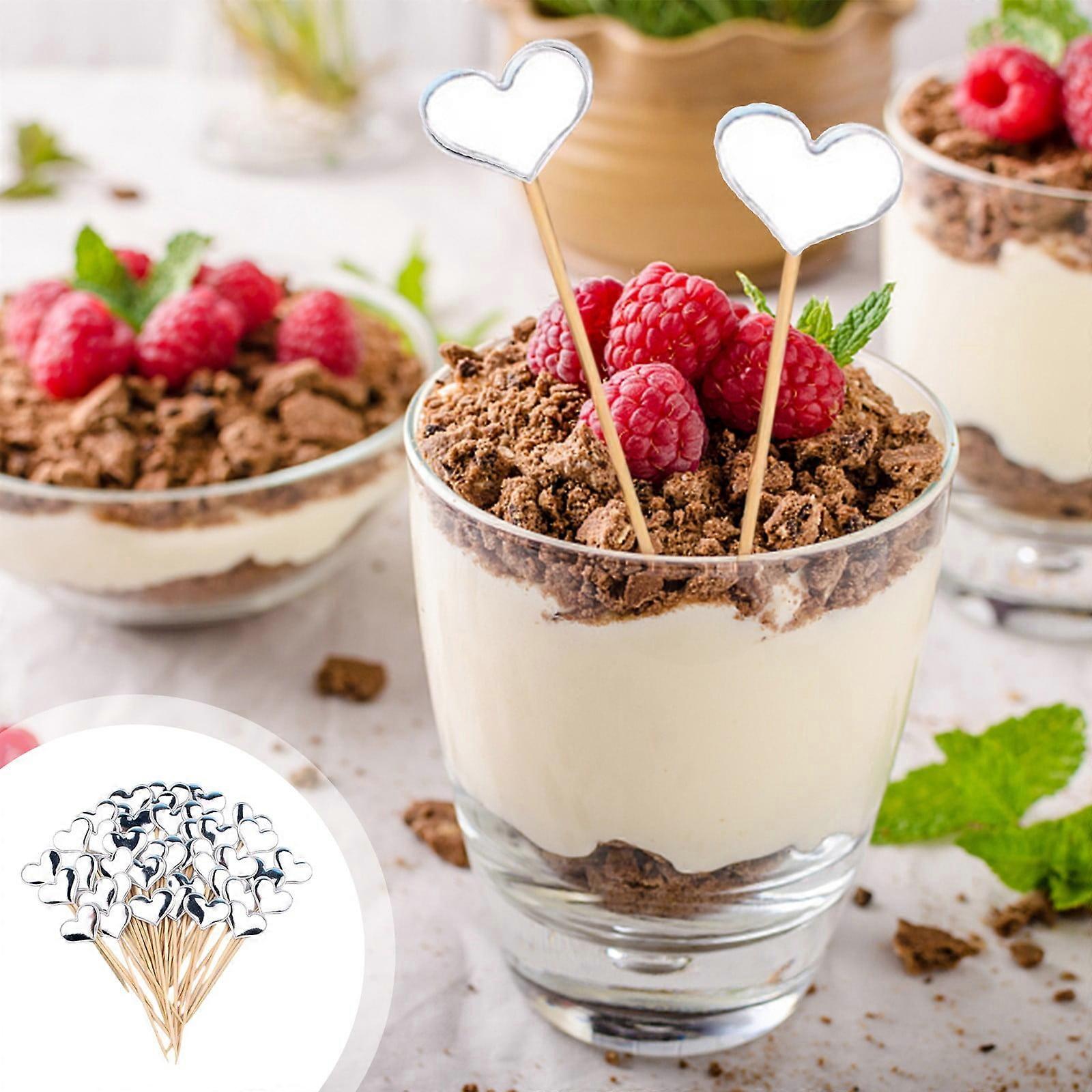 50 PCS Heart Cocktail Picks 4.7" Heart Bamboo Toothpicks Heart Fancy Toothpicks Bamboo Fancy Appetizer for Wedding Birthday Party Decoration