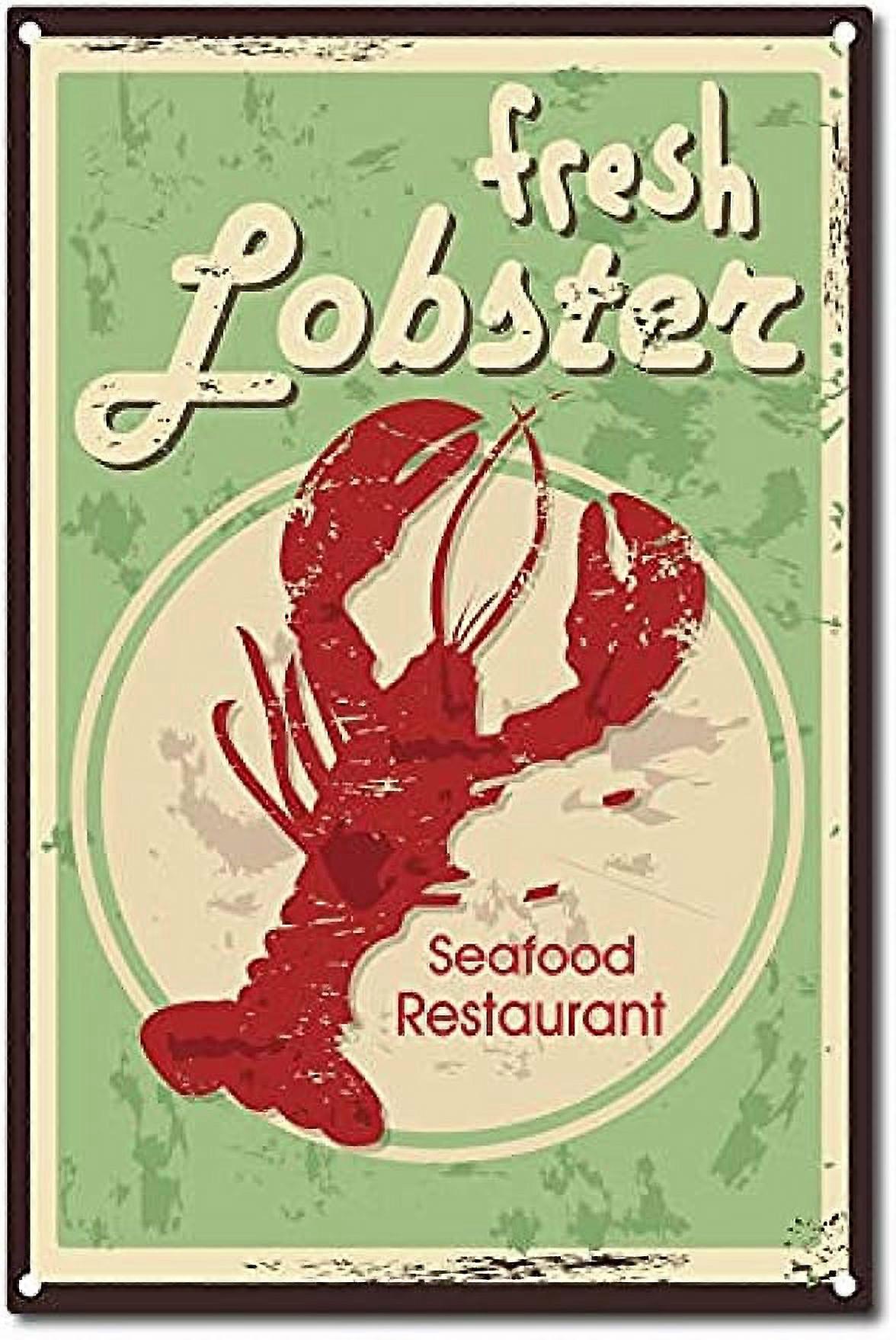 1PC Fresh Lobster Metal Tin Sign Seafood Vintage for Cafe Bar Pub Shop Wall