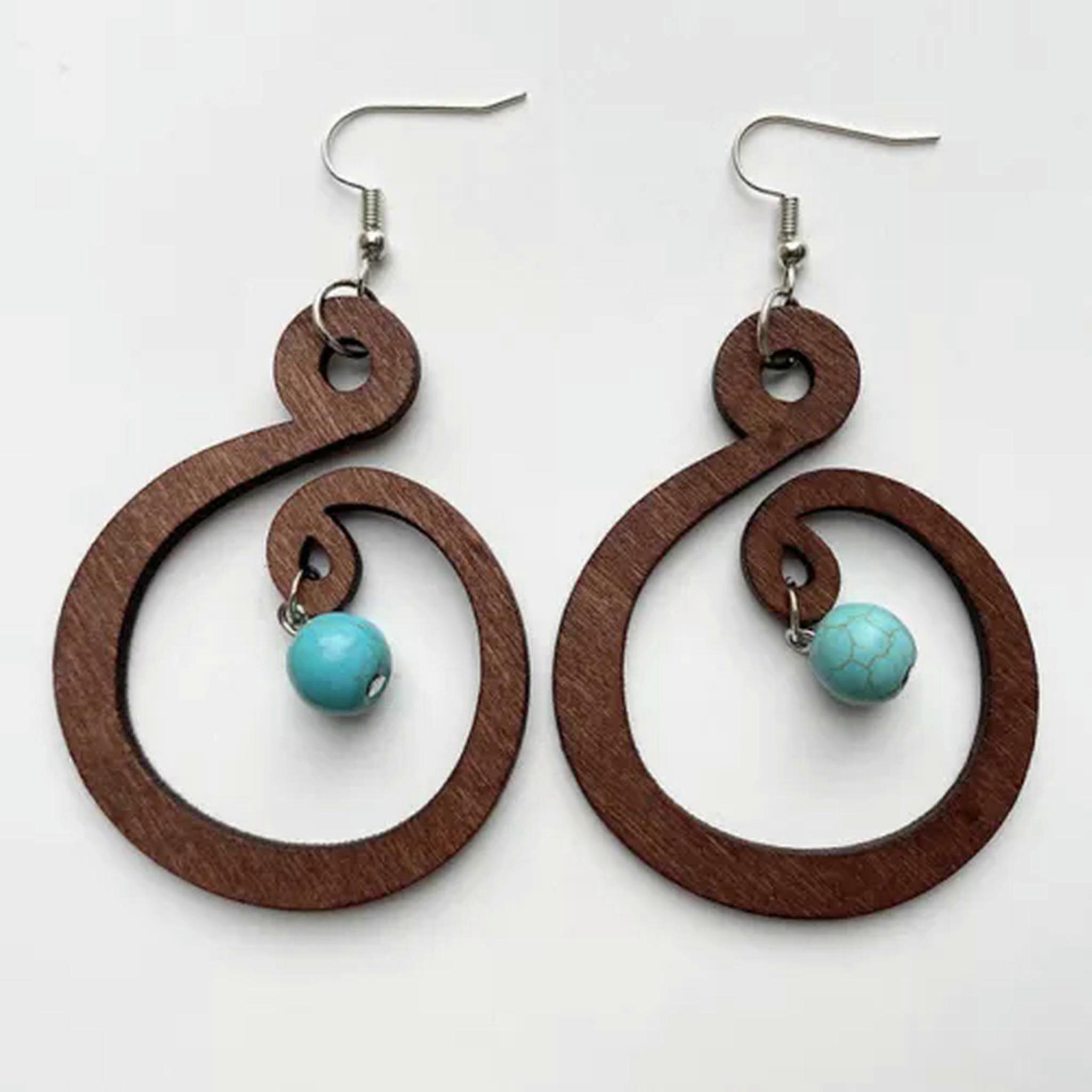 RSAMD Geometric Brown Wood Circle Round Turquoise Stone Statement Earrings for Women-Turquoise