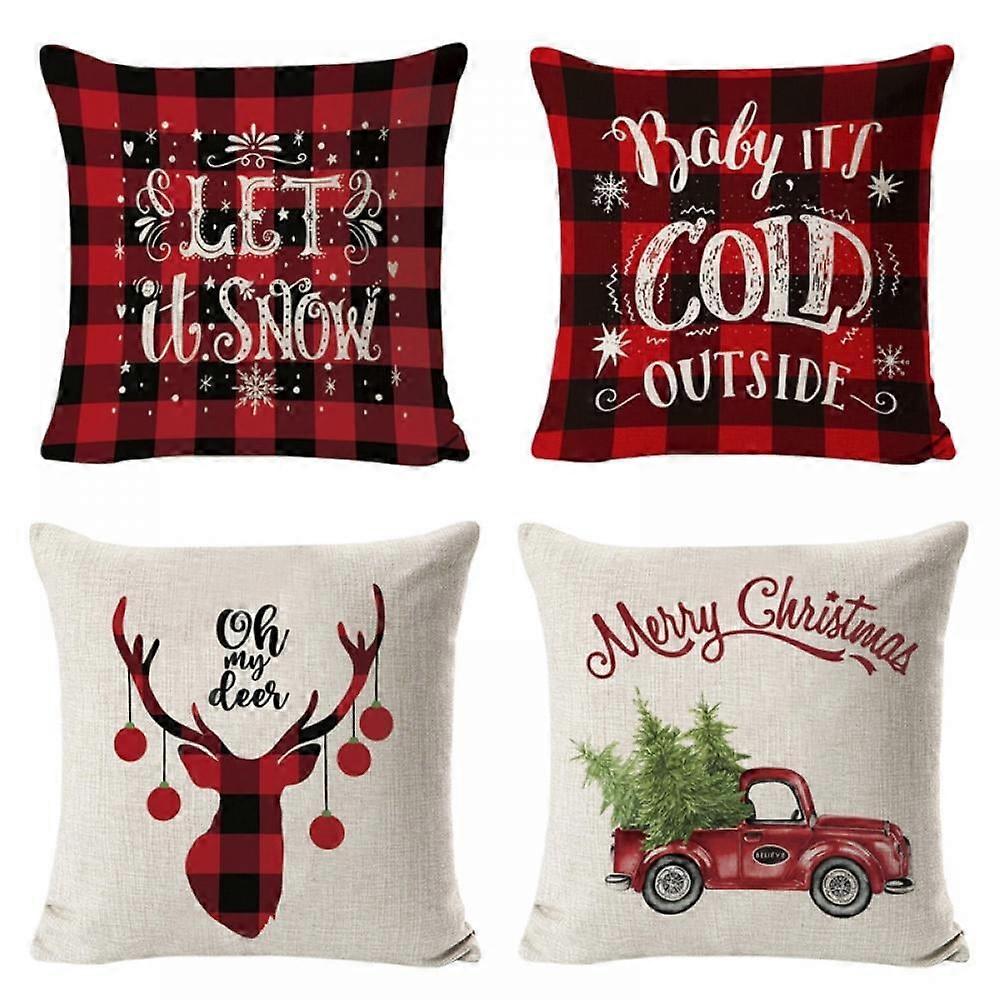 4 PCS Christmas Pillow Covers 18x18 inch, Buffalo Plaid Xmas Decorative Couch Cushion Cases, Cotton Linen Square Cover - Compatible with Holiday