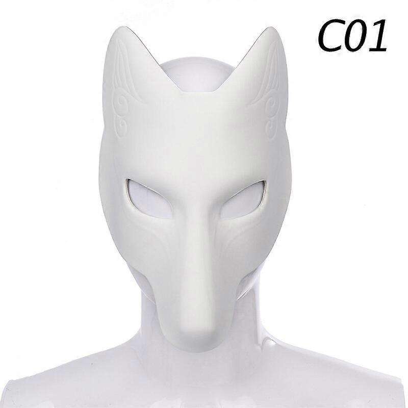 Japanese PU Leather Fox Mask Cosplay Halloween Party Costume Hand Drawn DIY Mask