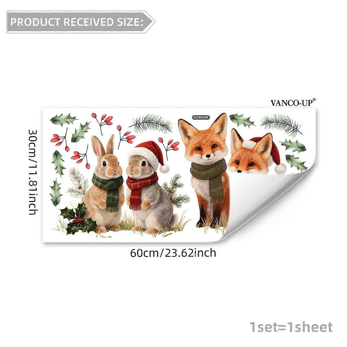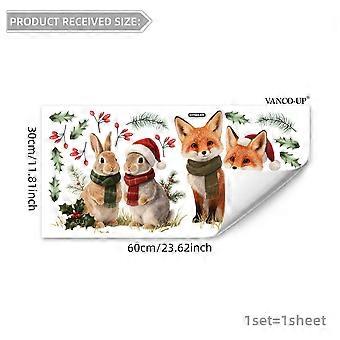 Christmas Themed Window Stickers Cute Rabbits Foxes Tree Holes Hedgehogs Creative Stores Home Holiday Background Decoration