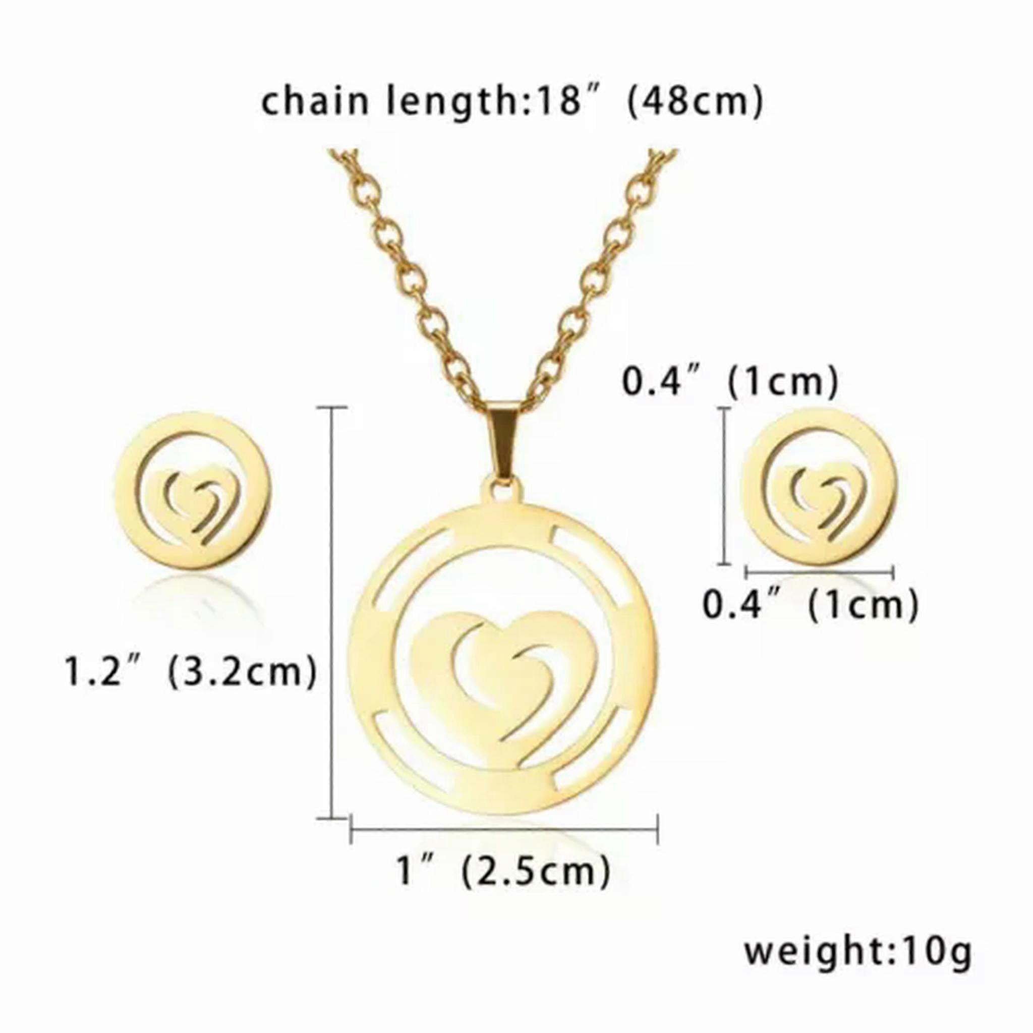 RSAMD Stainless Steel Gold Plated Heart Butterfly Pendant Necklace Earrings Jewellery-#15 Round