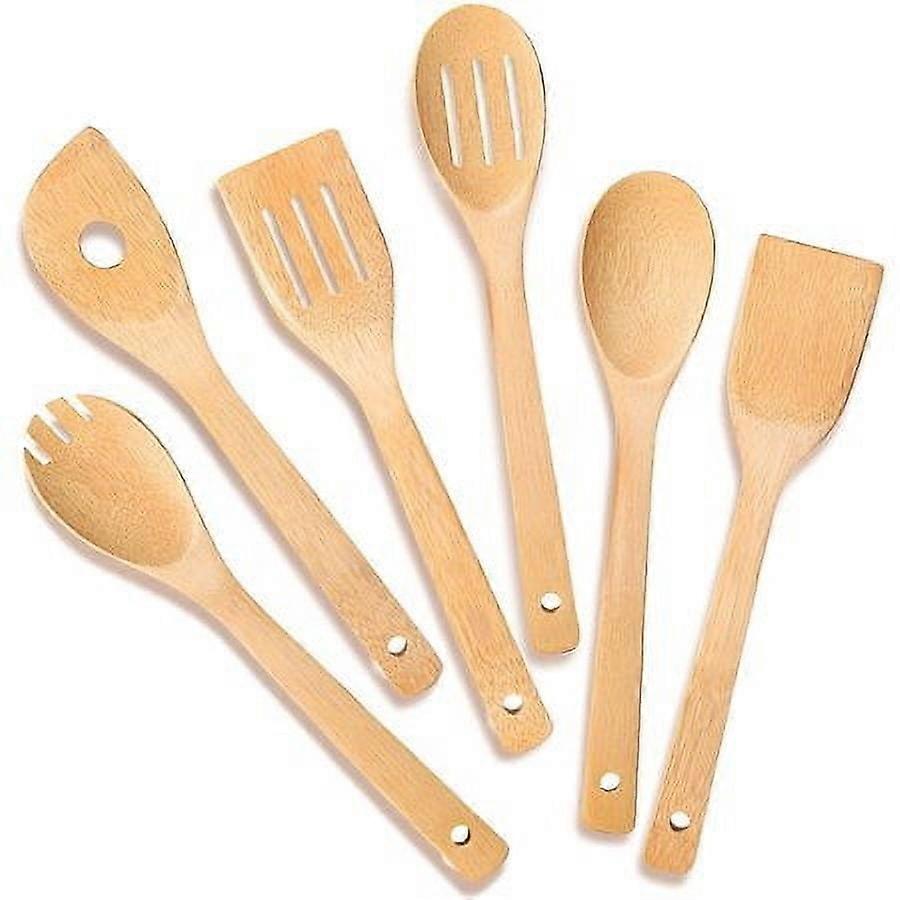 Wooden Spoons for Cooking 6-Piece Bamboo Utensil Set Apartment Essentials Wood Spatula Spoon Nonstick Kitchen Utensil Set
