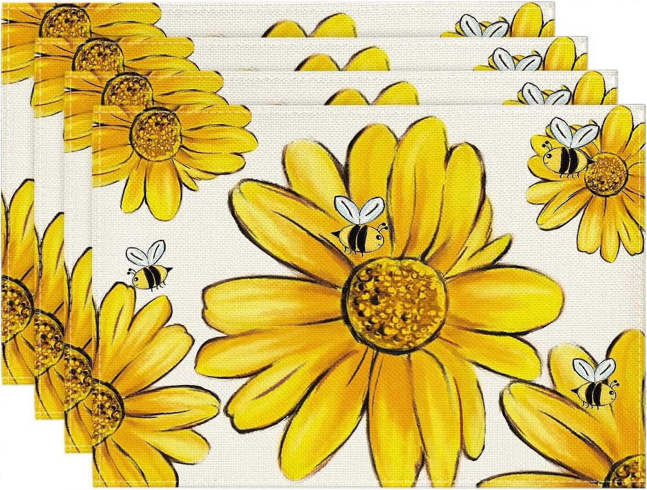 Bee Sunflower Placemats for Dining Table Set of 4, Spring Summer Seasonal Decoration Rustic Washable Table Mats,12 x 18 Inch