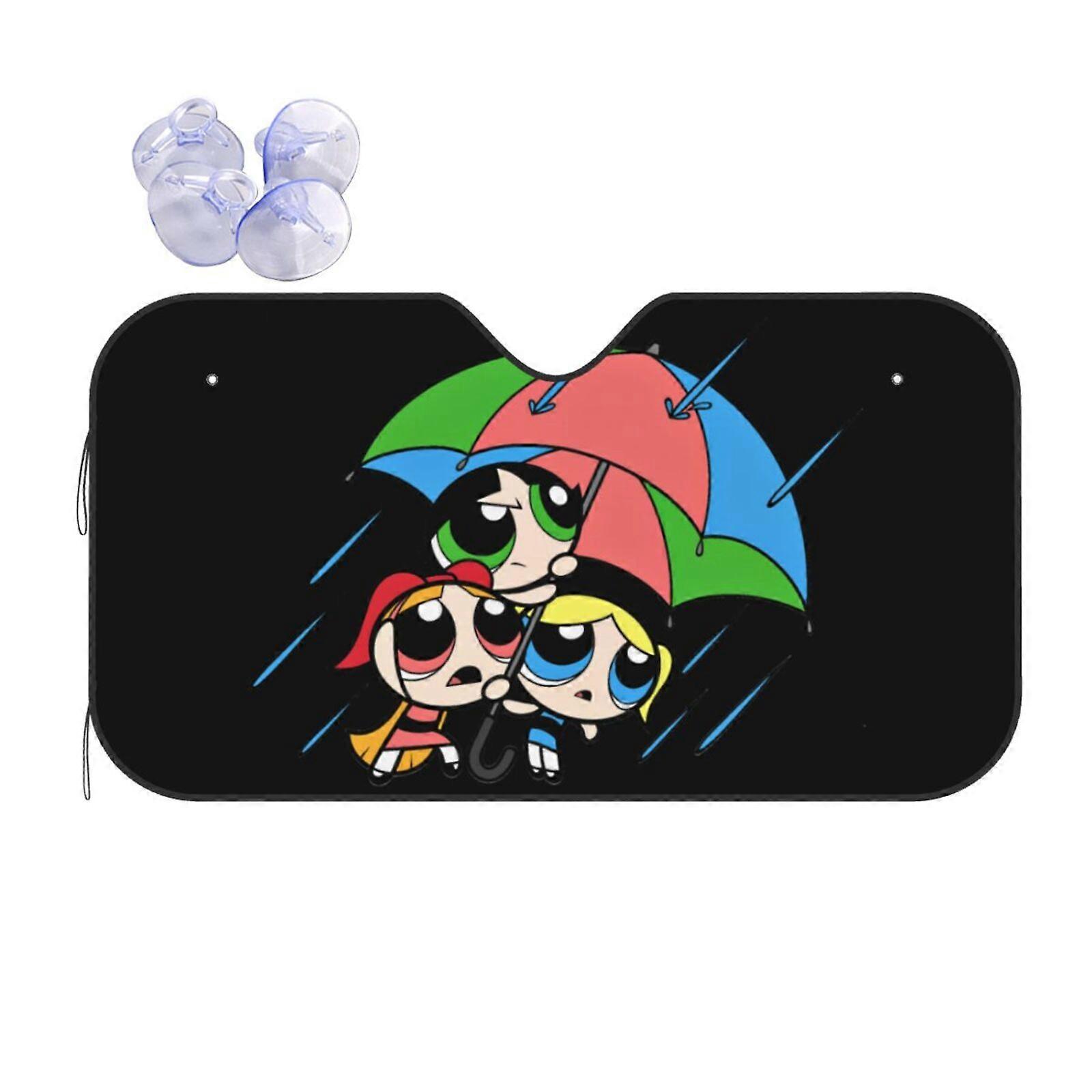 Powerpuff Girls Reflector Windshield Sunshade, compatible with small cars. Foldable reflective polyester shield blocks heat and sun, protects