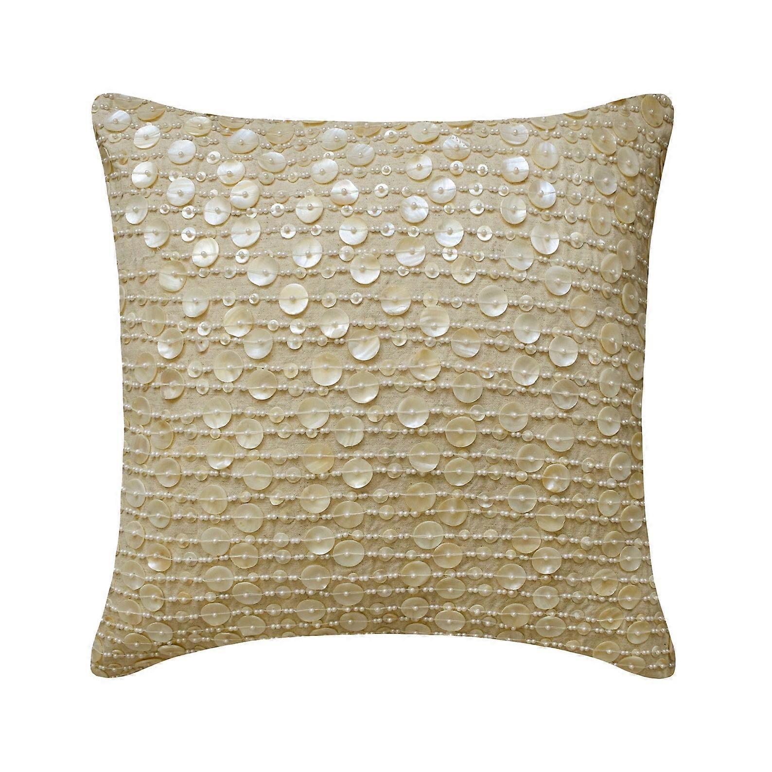 Beige 24x24 inch (60x60 cm) Pillow Cover, Luxury Ecru Cotton Linen Sham, Mother Of Pearls Design, Square Decorative Pillow Sham