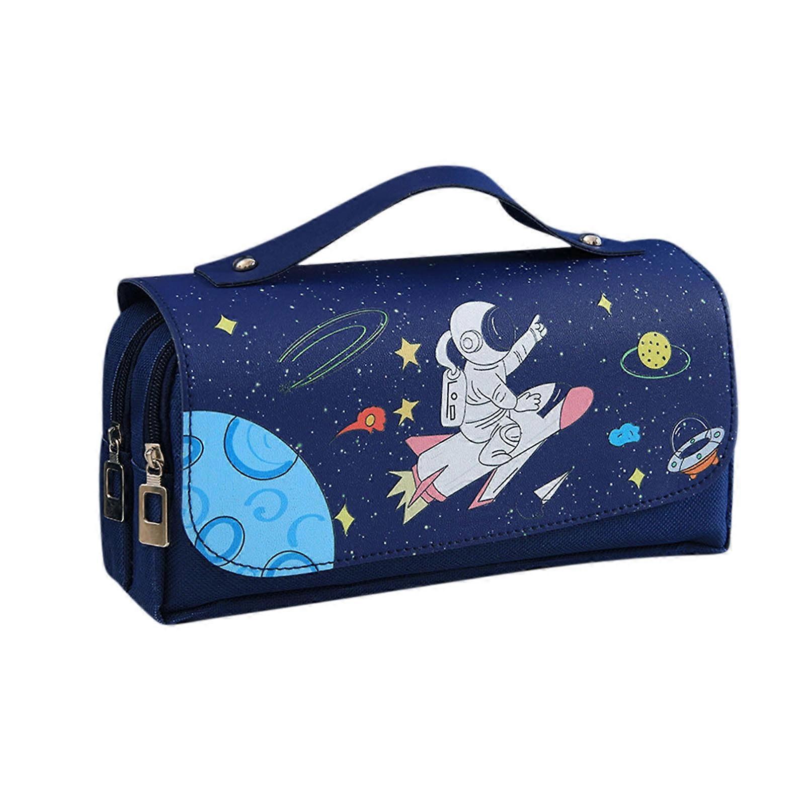 Quinlirra Back to School Space Astronaut Pencil Case, 3-Layer Large Capacity Stationery Case for Boys & Girls, Compatible with School Supplies