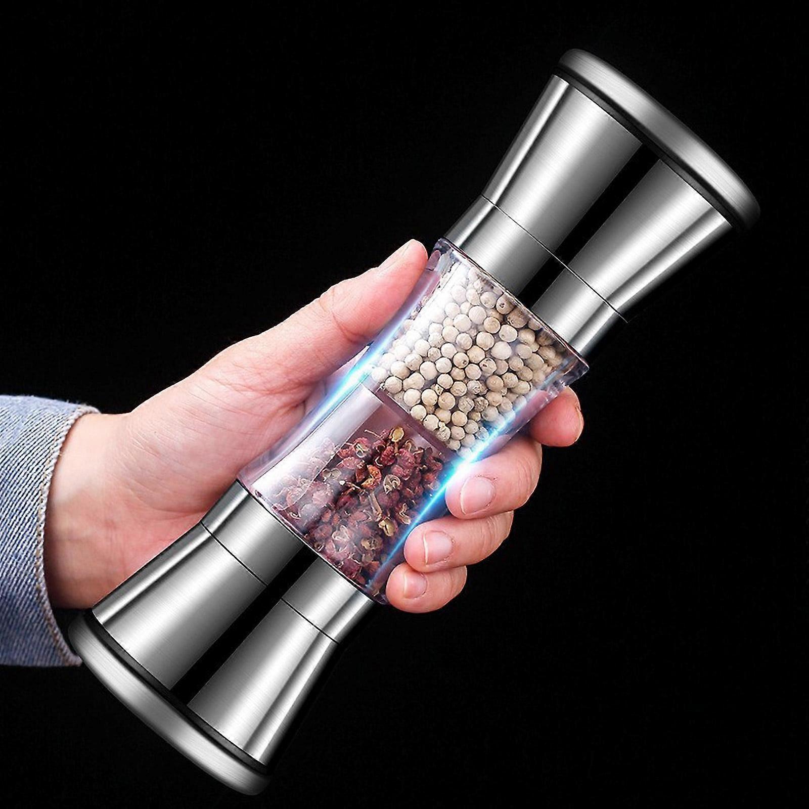 Double-headed Pepper Grinder, 304 Stainless Steel Manual Sea Salt & Sodium Chloride Grinder, compatible with Kitchen, Outdoor BBQ, Party Dining