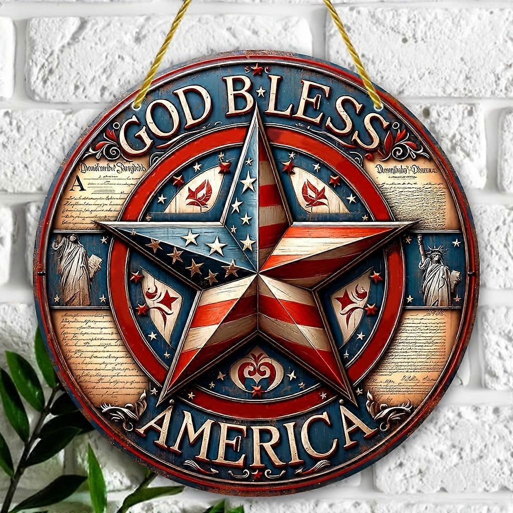 1pc God Bless America Sign, Metallic Round Aluminum, Independence Day Decor, Garage, Door, Wall Art, Home, Garden, Living Room, Compatible with USA