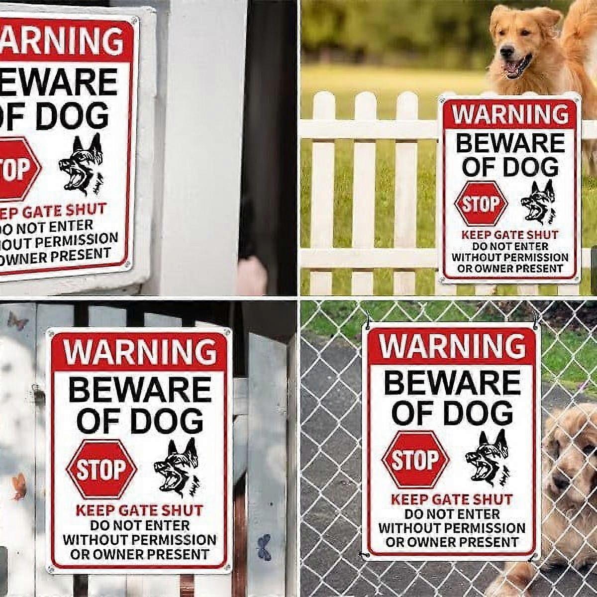 Donemore Red Beware of Dog Sign, Metal Warning Sign for Fence Gate, Indoor/Outdoor Use, Weatherproof Aluminum, No Fade Red Ink