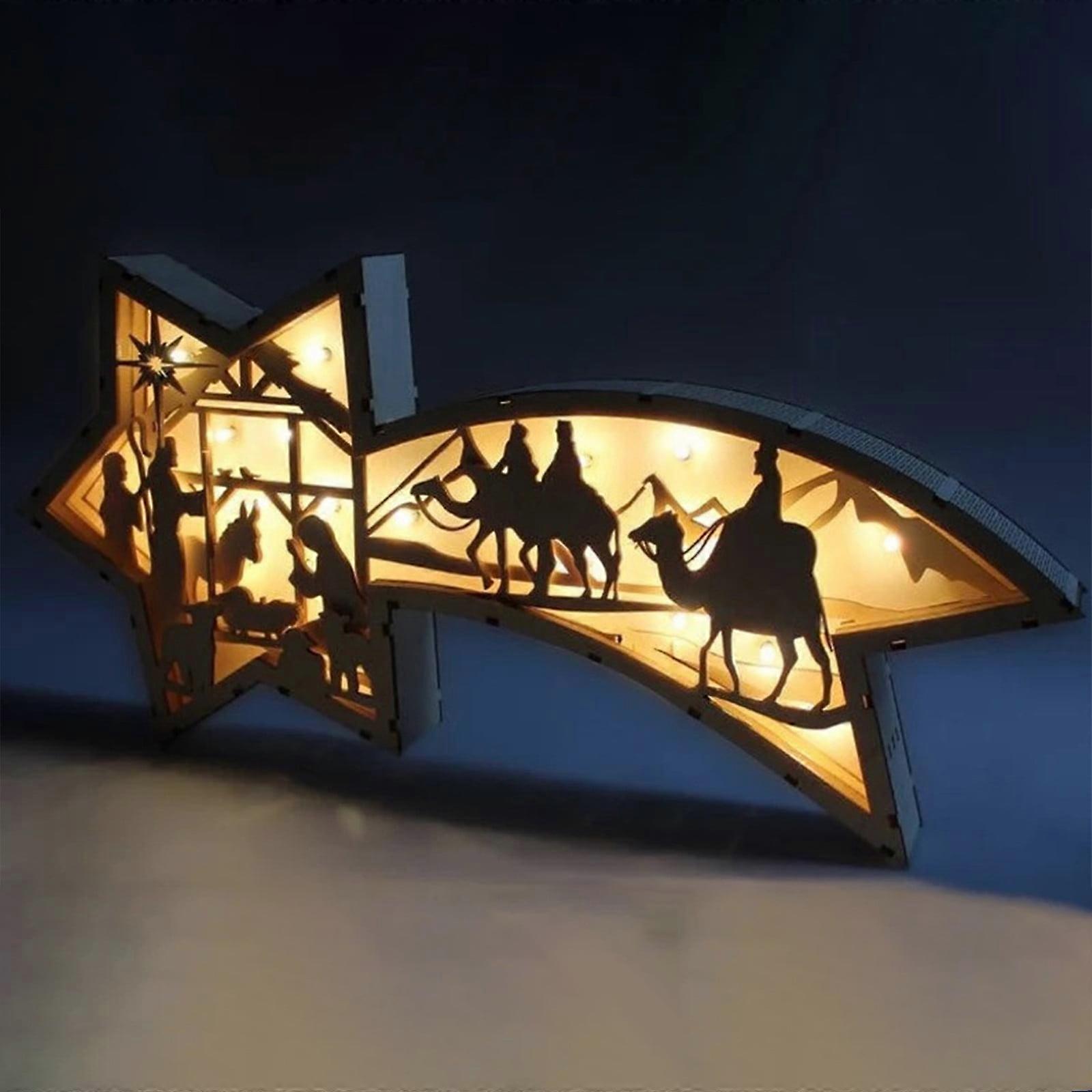 VALSEEL Home Decor Nativity Scene Ornaments, Christmas Wooden Star Shaped Table Decor, The Birth Of Decoration, Religious Family