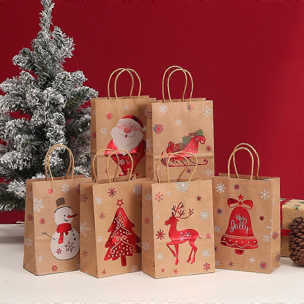 StoBag, Joyful Christmas Kraft Paper Reusable Bags, Party Decor, packing Presents, Gifts, Candy, reindeer pattern, Snowflake