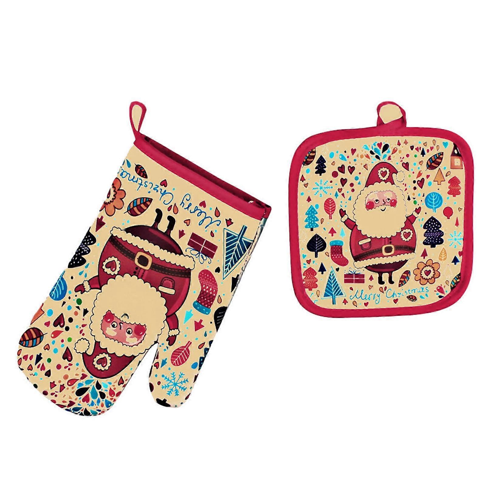 XiLanHUA Clearance Christmas Baking Anti-Hot Gloves Oven Microwave Insulation Mat Xmas Supply