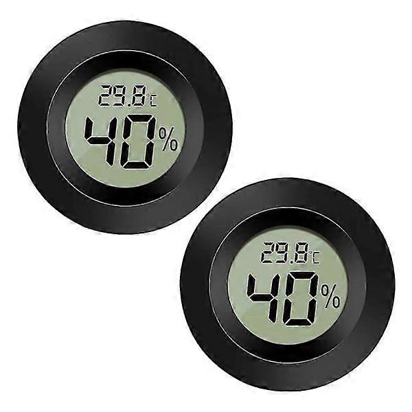 2-pack LCD Digital Hygrometer Thermometer, Indoor Outdoor Moisture Meter Temperature Gauge for Humidifier Dehumidifier Greenhouse Basement Black Round