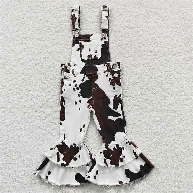 P0084-Fashion Girl Western Cow Leopard Kids Adjustable Overalls Denim