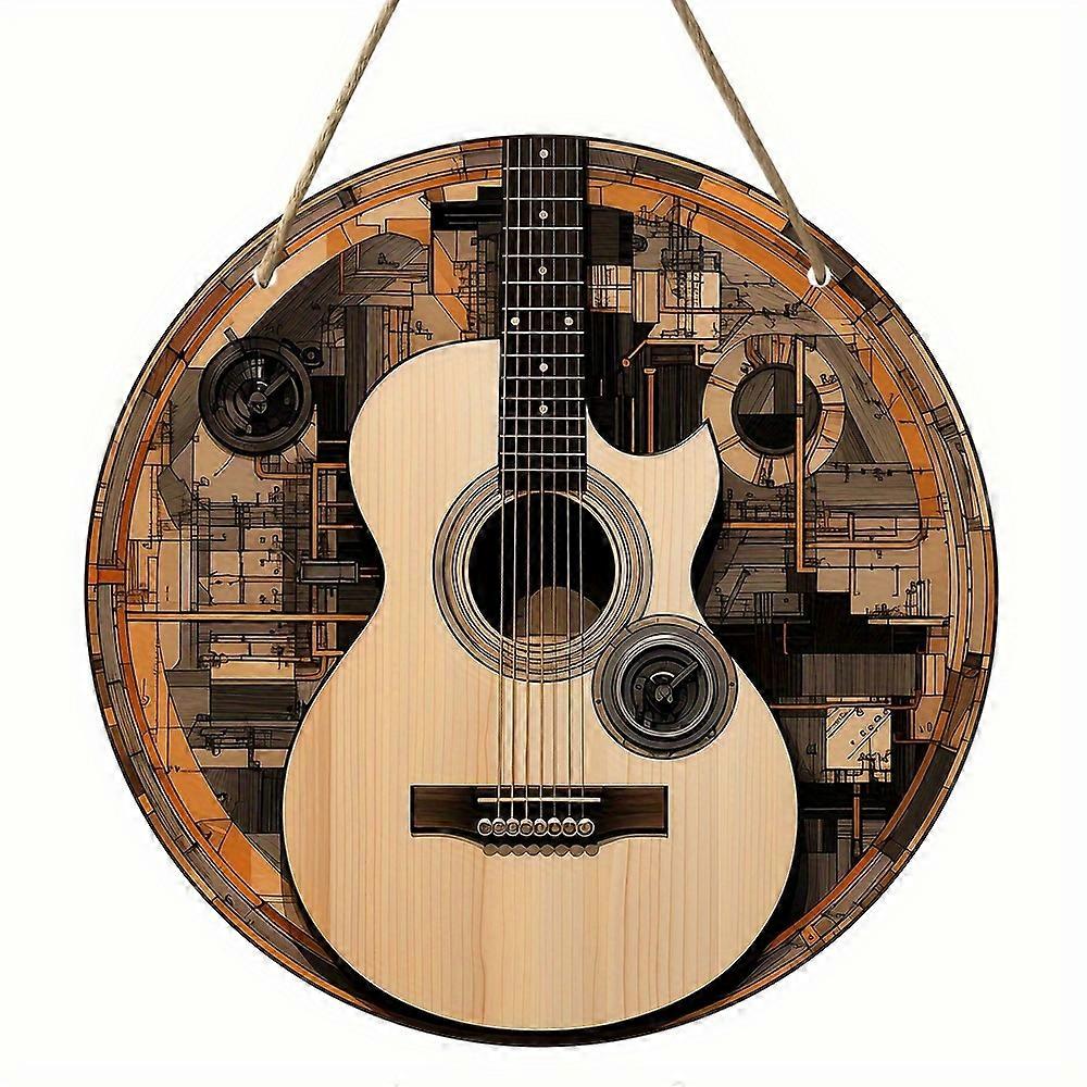 Vintage Music Wooden Hanging Sign, Guitar Plaque, 8x8" Rustic Round Wall Decor for Door, Porch, Living Room, Bedroom
